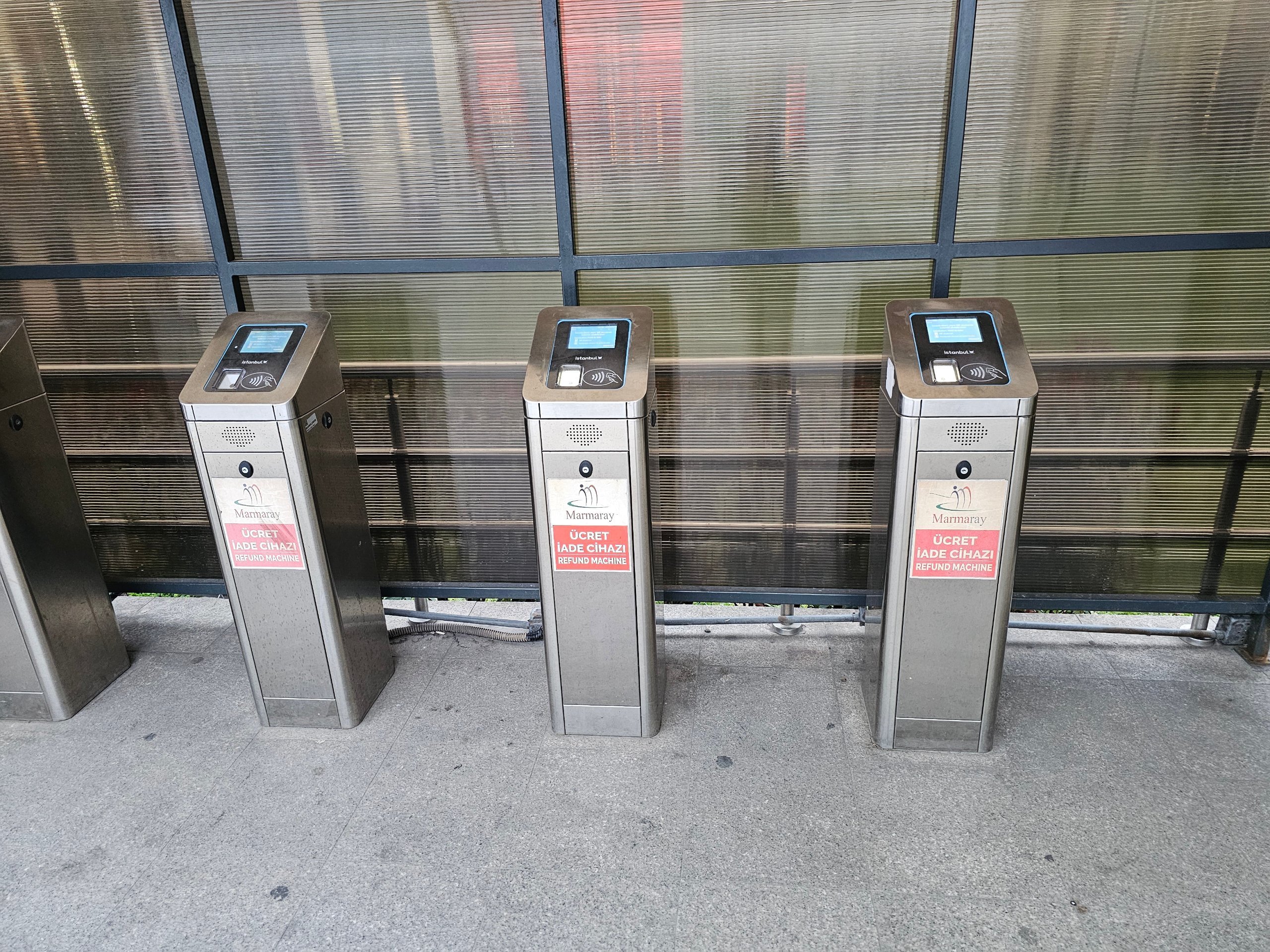 Când ieșiți din stație, găsiți micile validatoare argintii (uneori roșii) "Refund machine", la care reatașați IstanbulKart-ul și se calculează prețul real (de obicei, aproximativ 35 try pentru scurta traversare Sirkeci - Üsküdar.