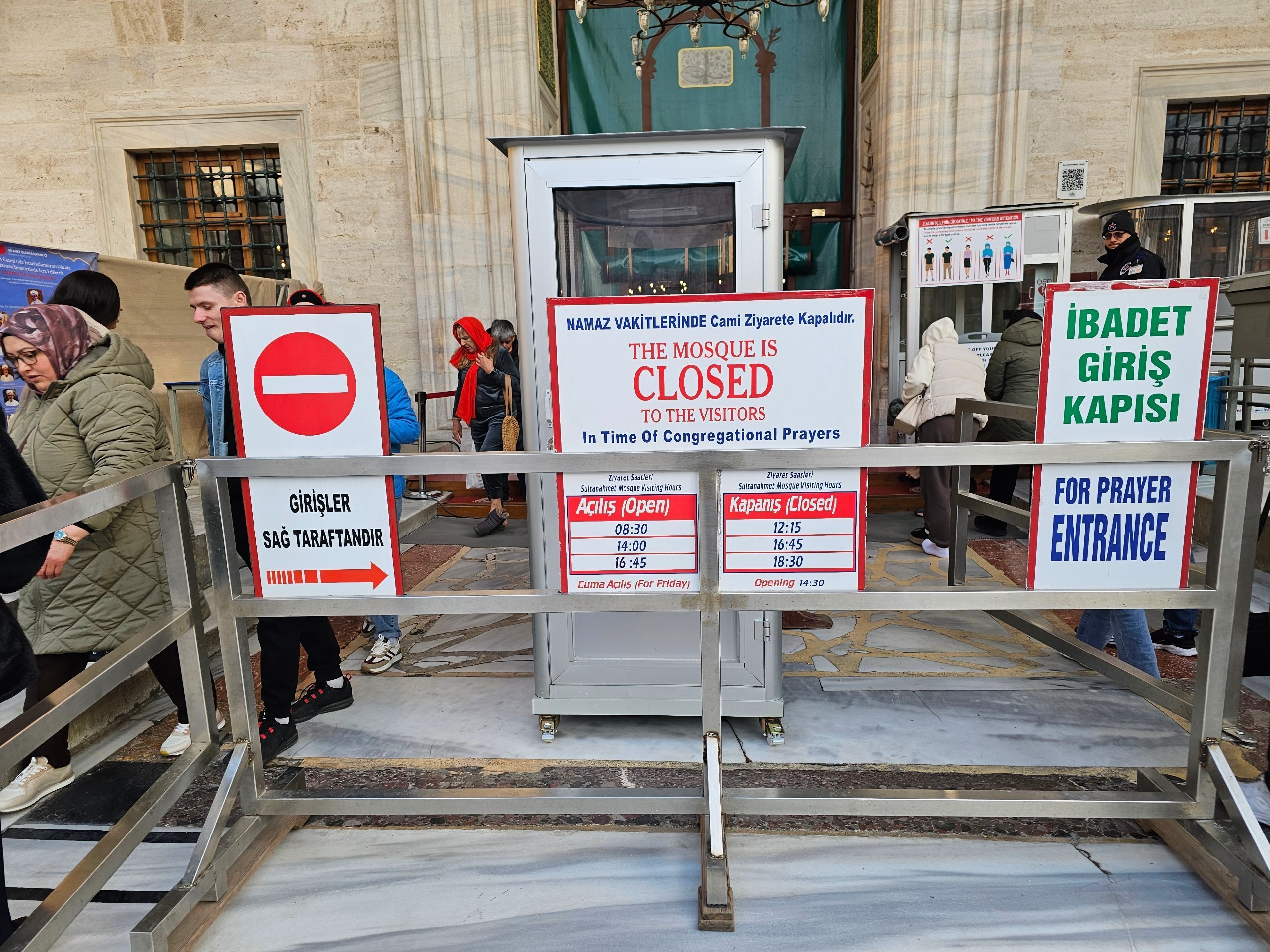 Moscheea este întotdeauna închisă pentru toți non-musulmanii în timpul rugăciunilor și cu o oră înainte de acestea.