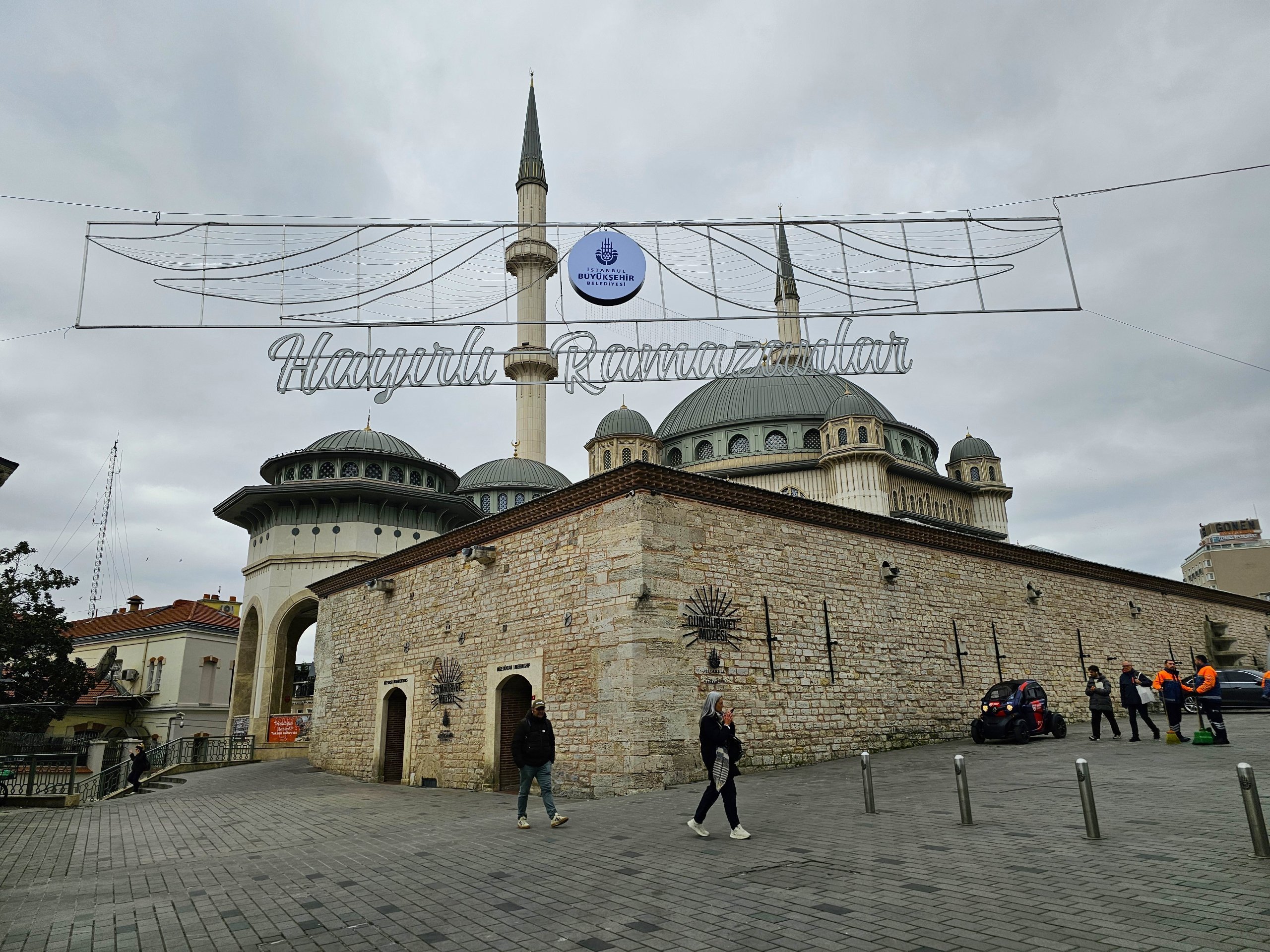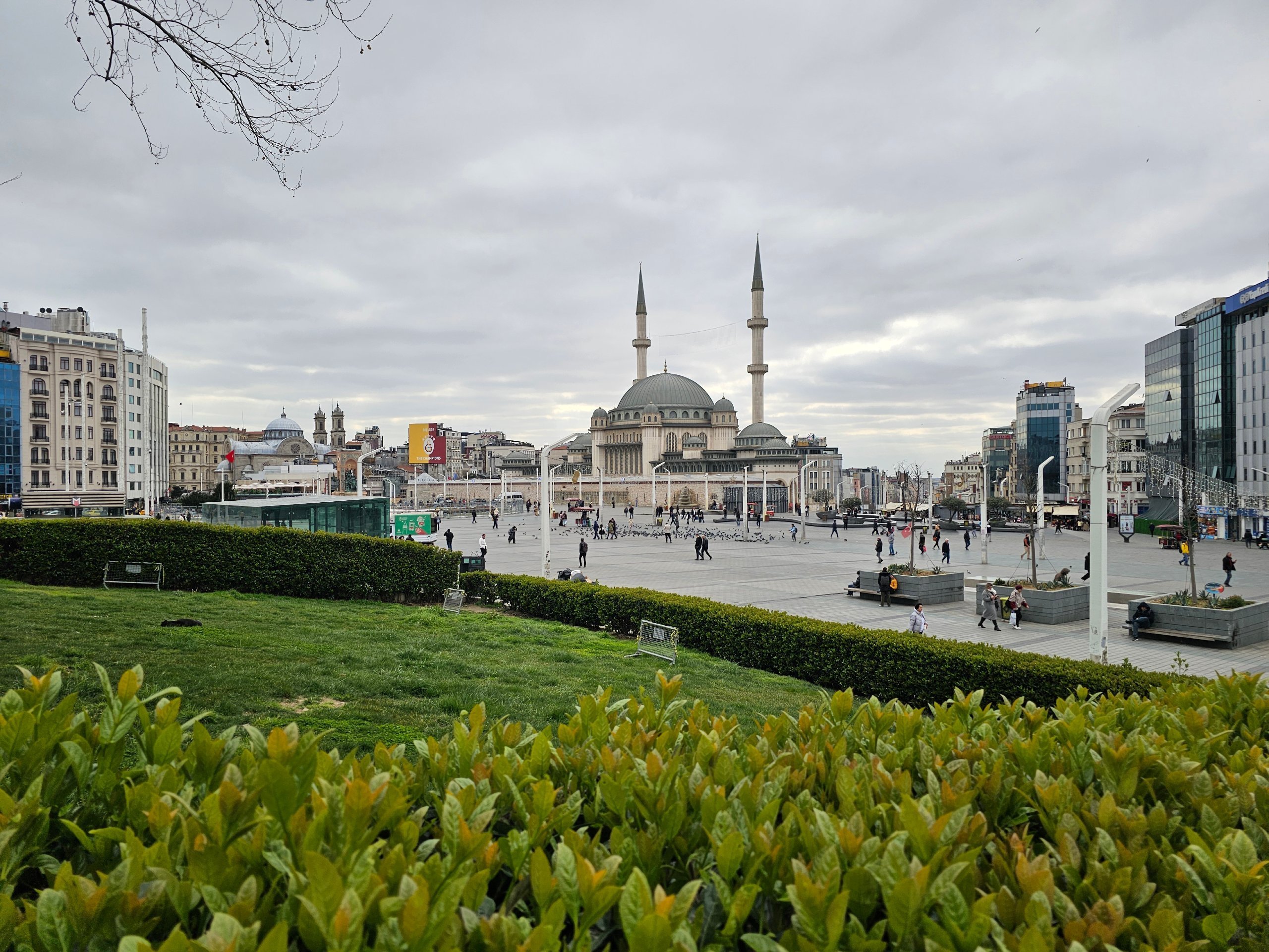 Există un parc frumos în mijlocul pieței, iar Moscheea Taksim este situată pe marginea sudică.