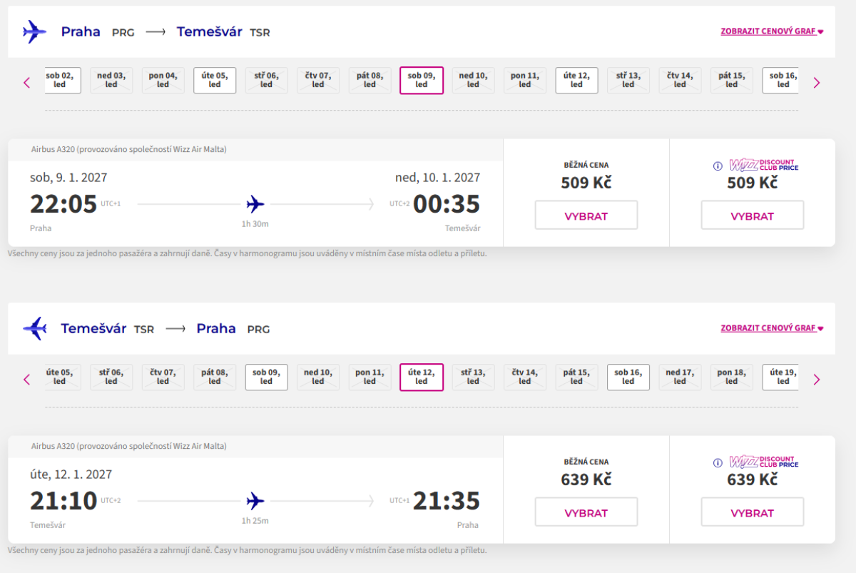 Wizz Air lansează o nouă rută directă de la Praga la Timișoara, România. Biletele dus-întors pot fi achiziționate pentru doar 47 eur.