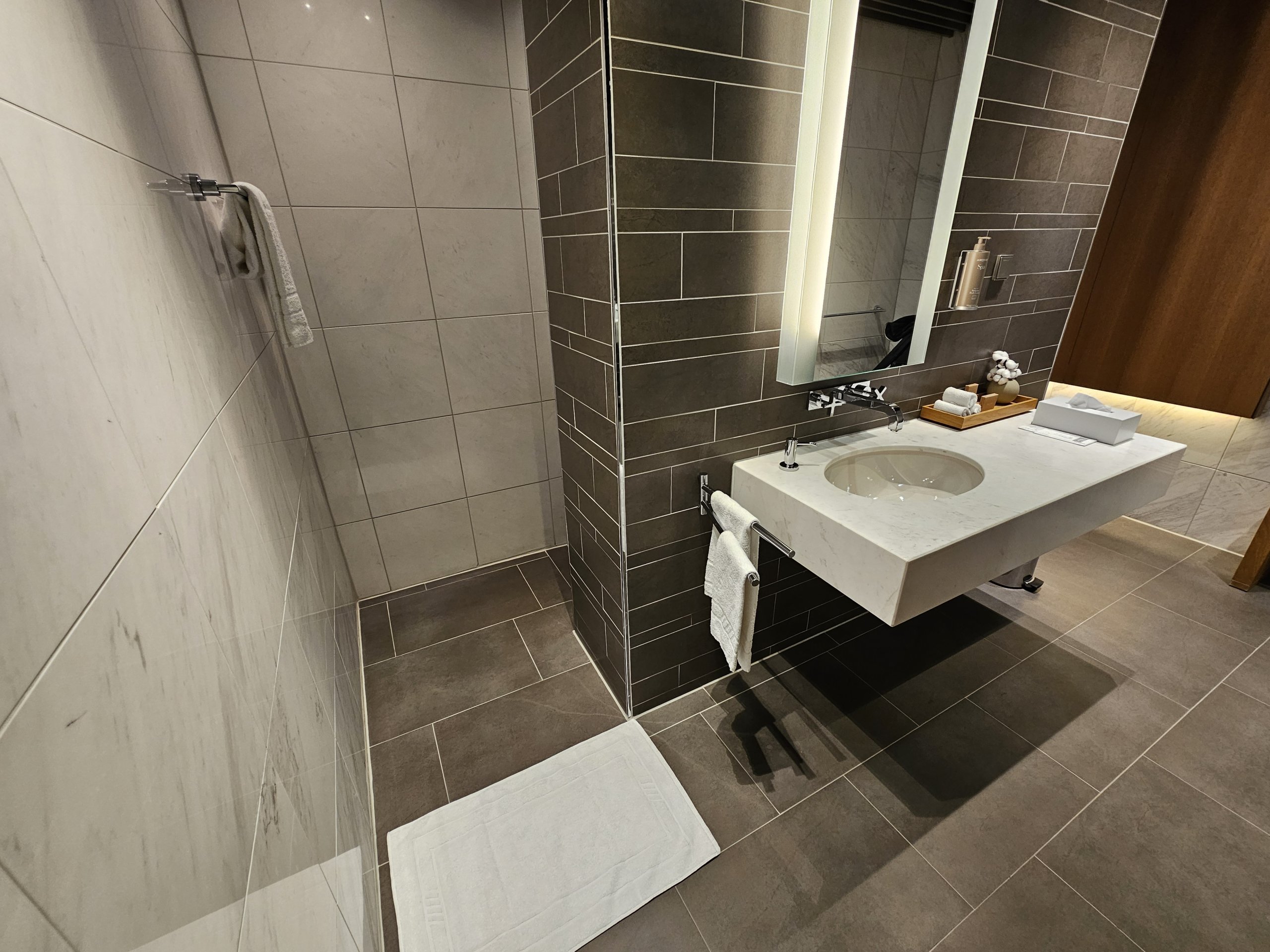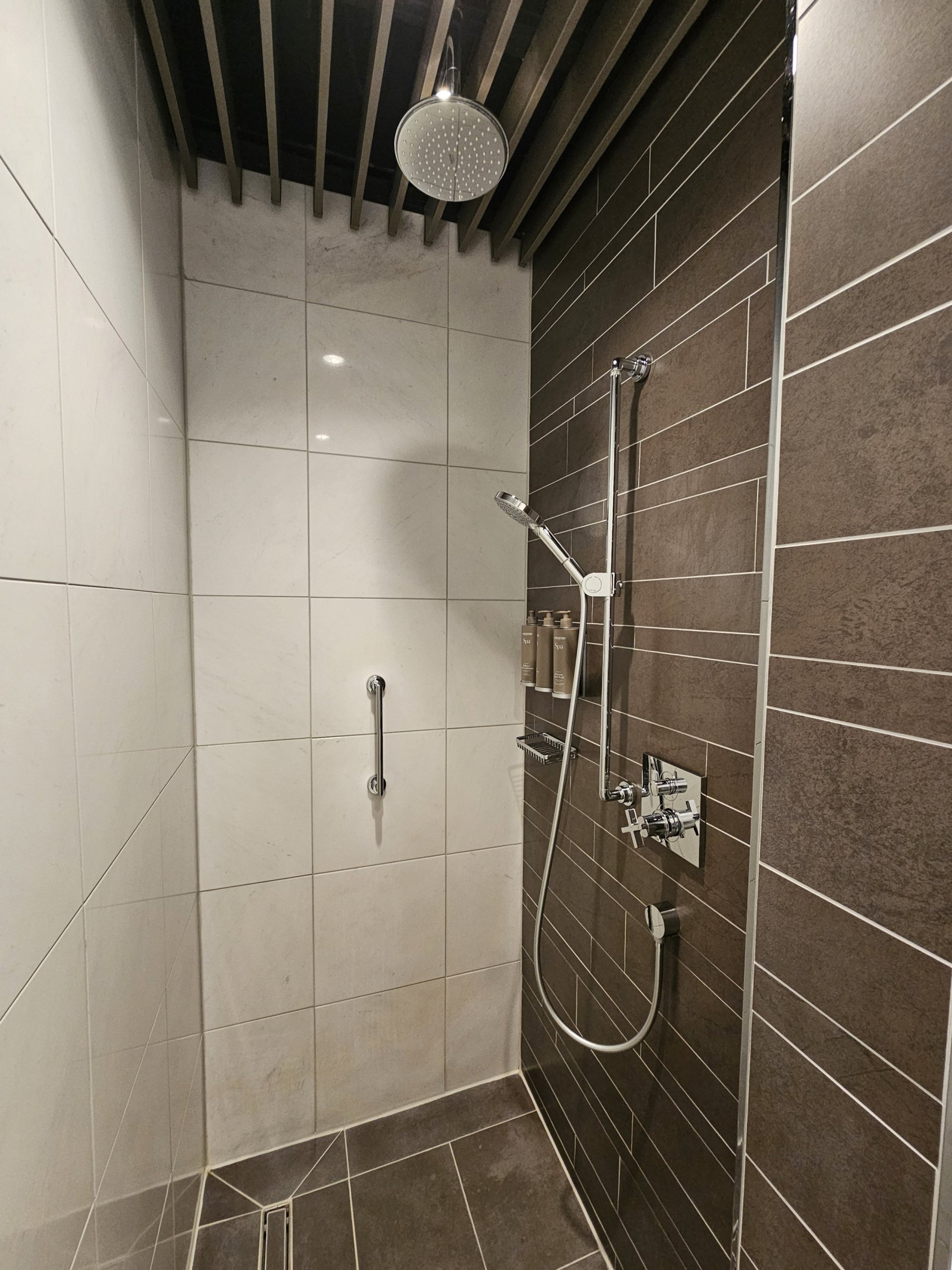 După un zbor lung de 14 ore, un duș mare și curat este de asemenea util.
