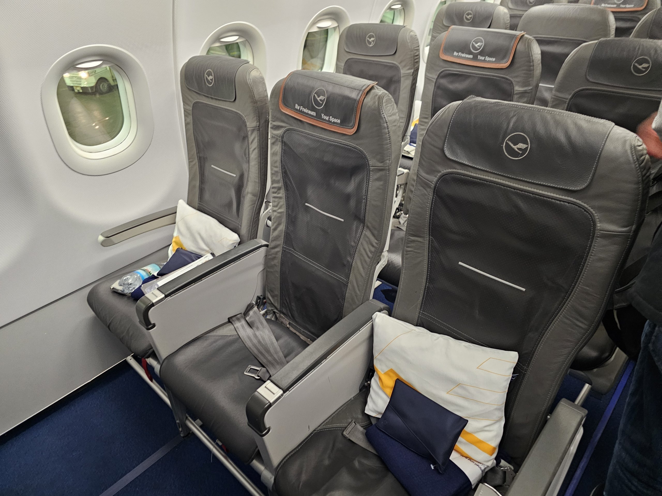 Clasa business regională a Lufthansa pe flota sa de aeronave Airbus A32S cu corp îngust este bine cunoscută - locuri standard la clasa economică cu un loc din mijloc garantat neocupat.