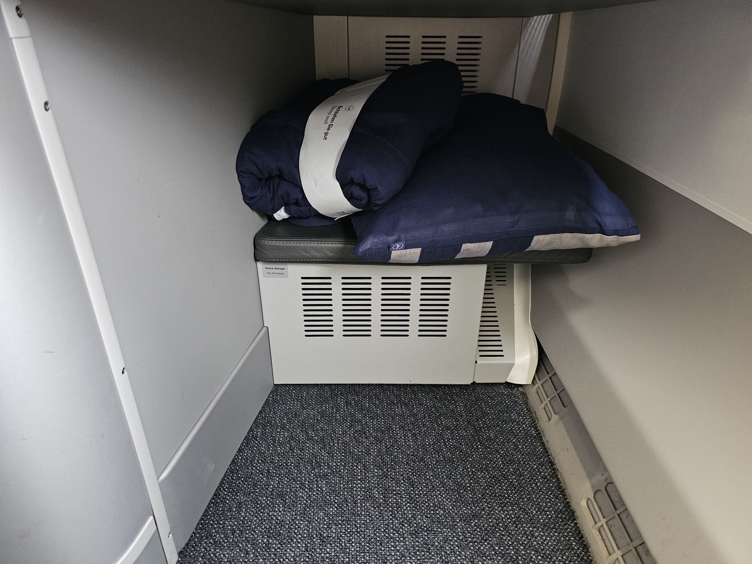 Îi lipsește lenjeria de pat, dar asta tinde să fie standard doar pe zborurile de noapte.