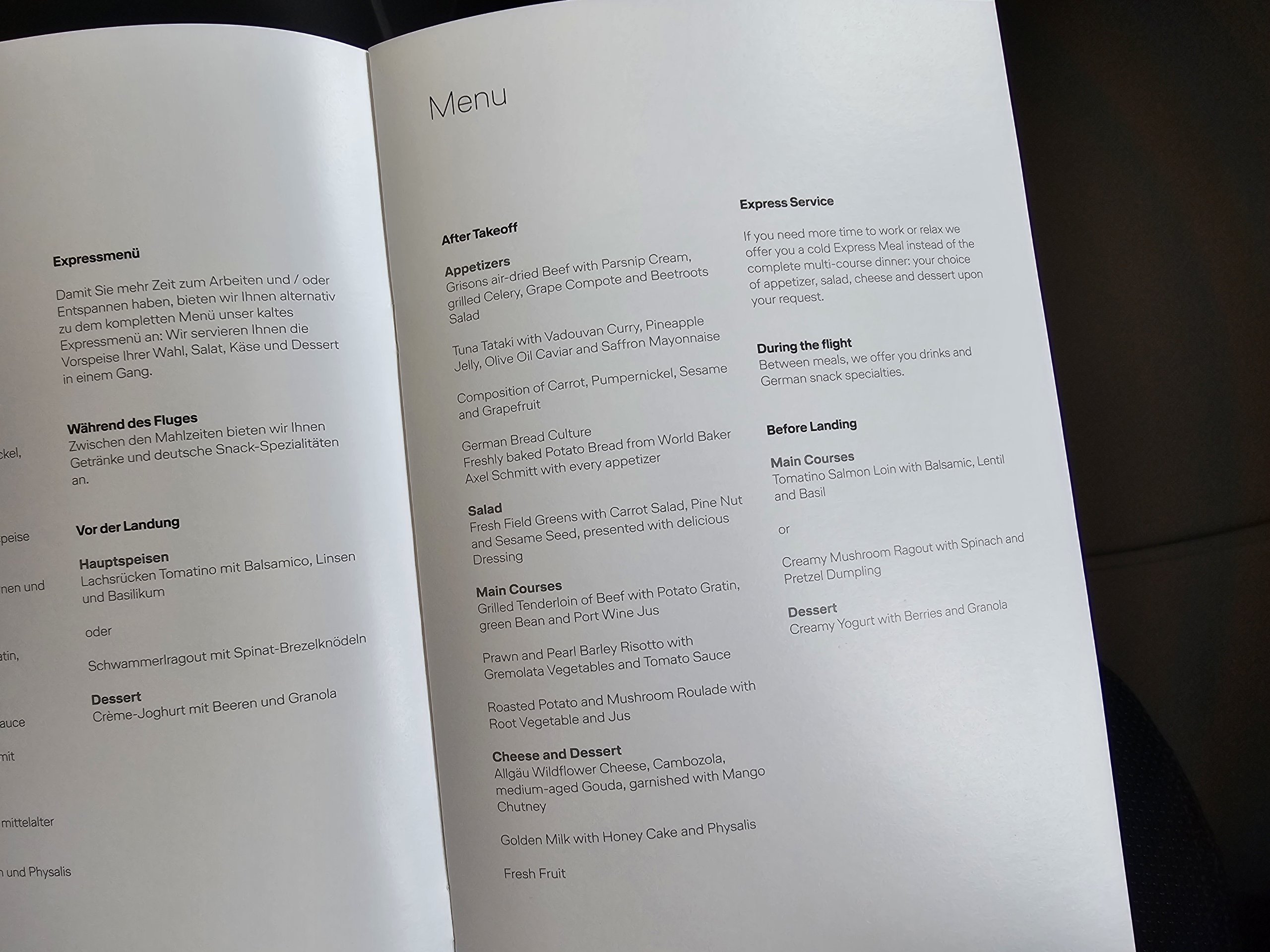 Din fericire, puteți studia meniul înainte de zbor la lufthansa.com/menus-in-business-class.