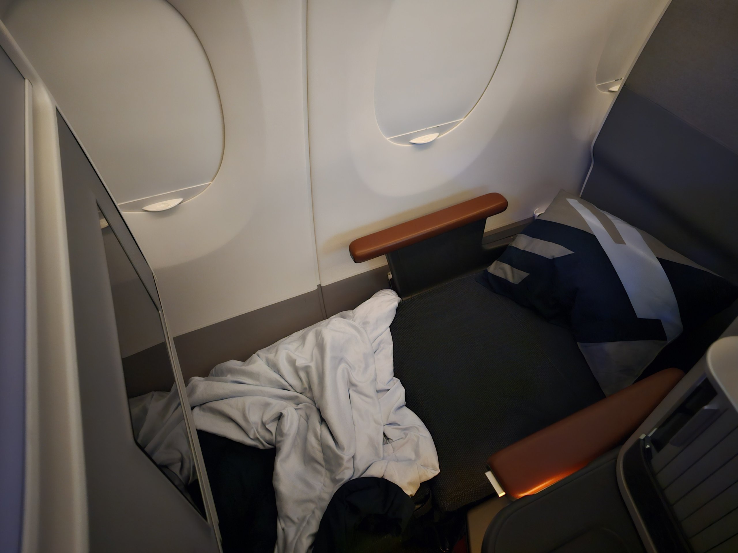 Chiar dacă a fost un zbor de o zi, a trebuit să încerc patul la clasa business.
