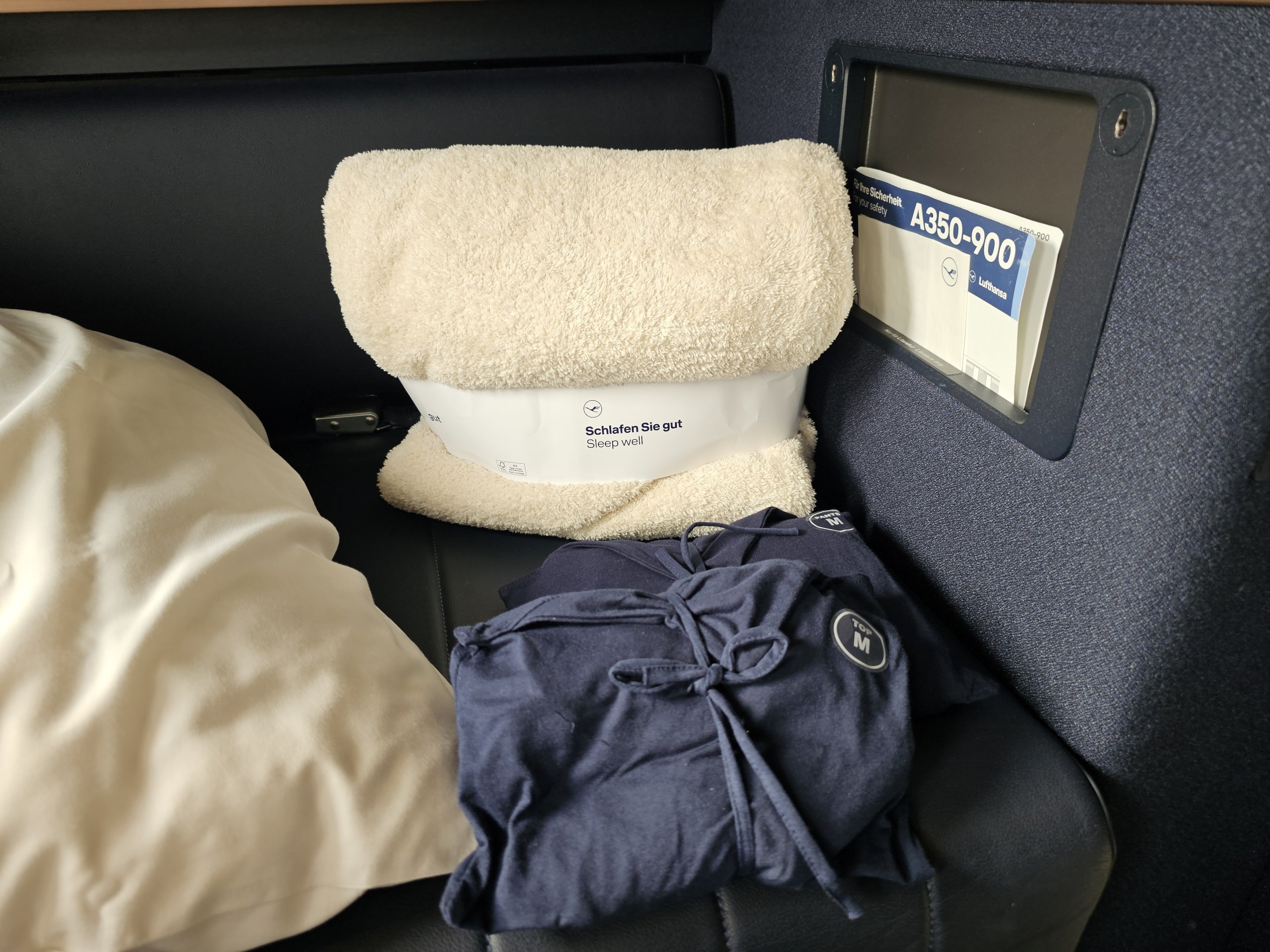 Scaunul este echipat cu o pernă și o pătură extrem de confortabile, care pot fi folosite oricând în timpul zborului. Pentru dormit, veți primi apoi o altă pătură și lenjerie de pat din partea echipajului.