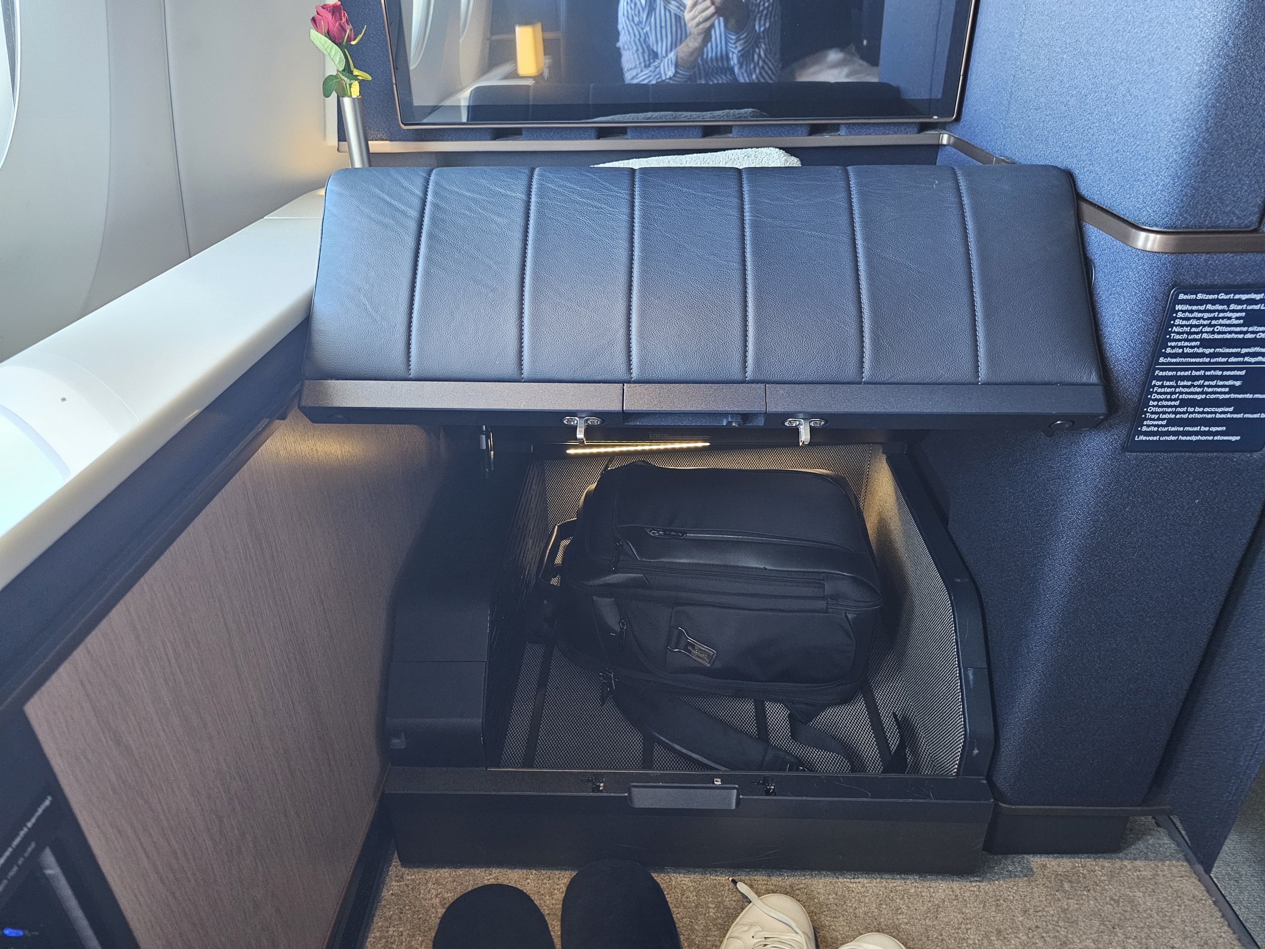 Comparativ cu scaunele din vechea First Class, spațiul de depozitare este puțin mai mic. Totuși, este încă o cantitate relativ suficientă.