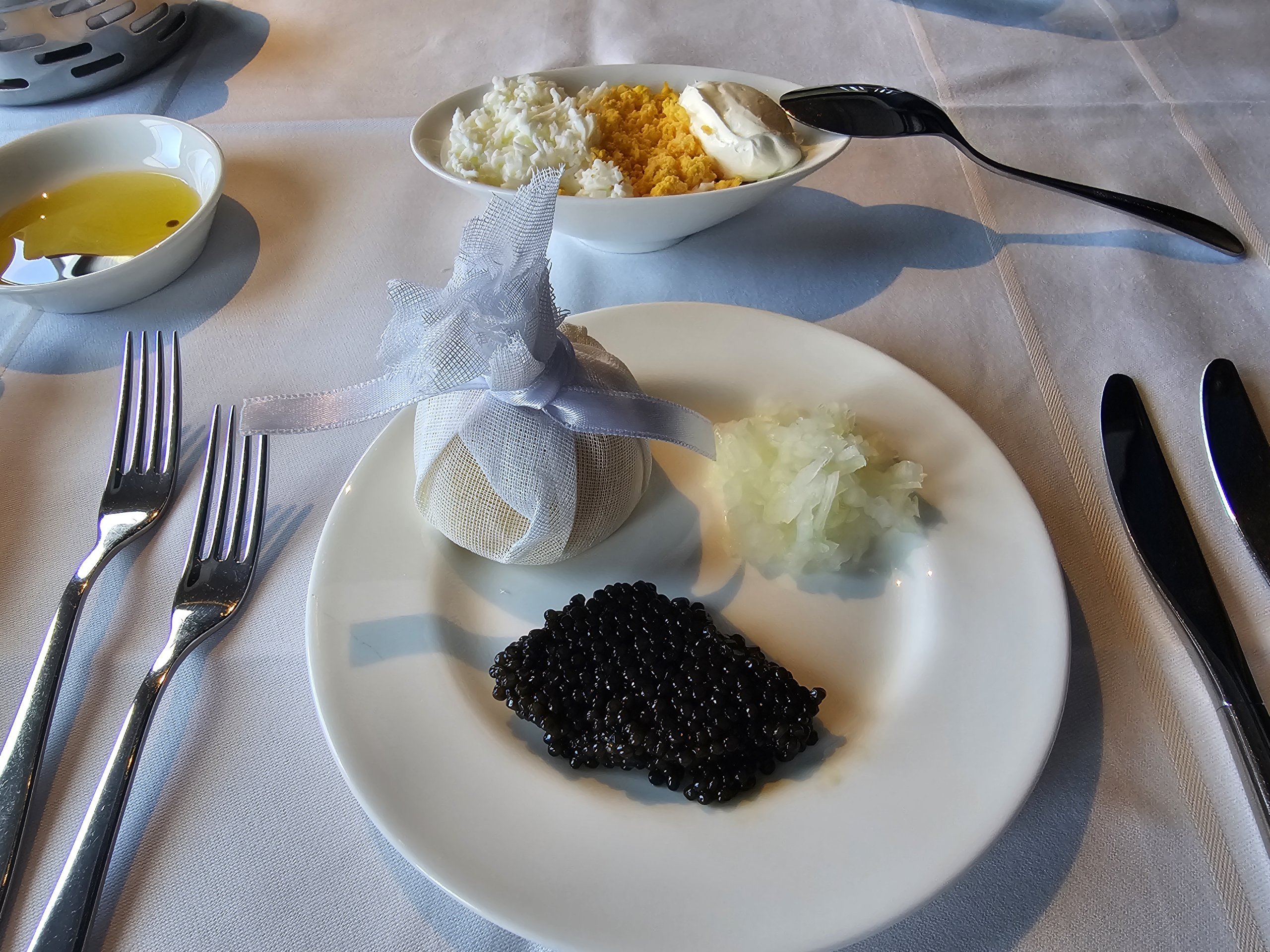 Chiar înainte de serviciul principal vine caviarul - produsul Lufthansa semnat la clasa întâi. Serviciul de caviar este pur și simplu un concept la această companie aeriană cu care sunt familiarizați toți pasagerii obișnuiți și pasionații de zboruri.