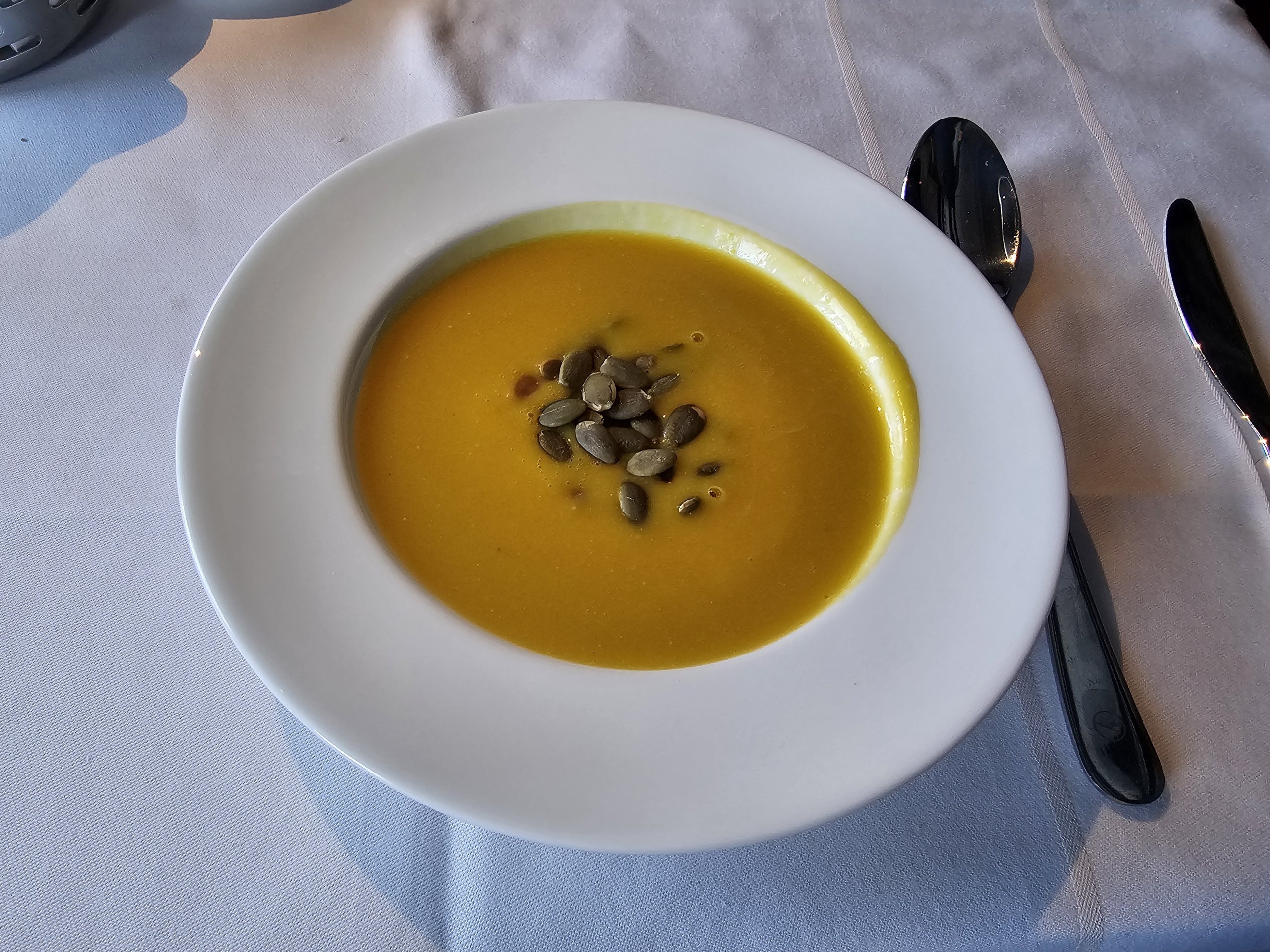 Înainte de masă beau o supă grozavă de dovleac și ghimbir.