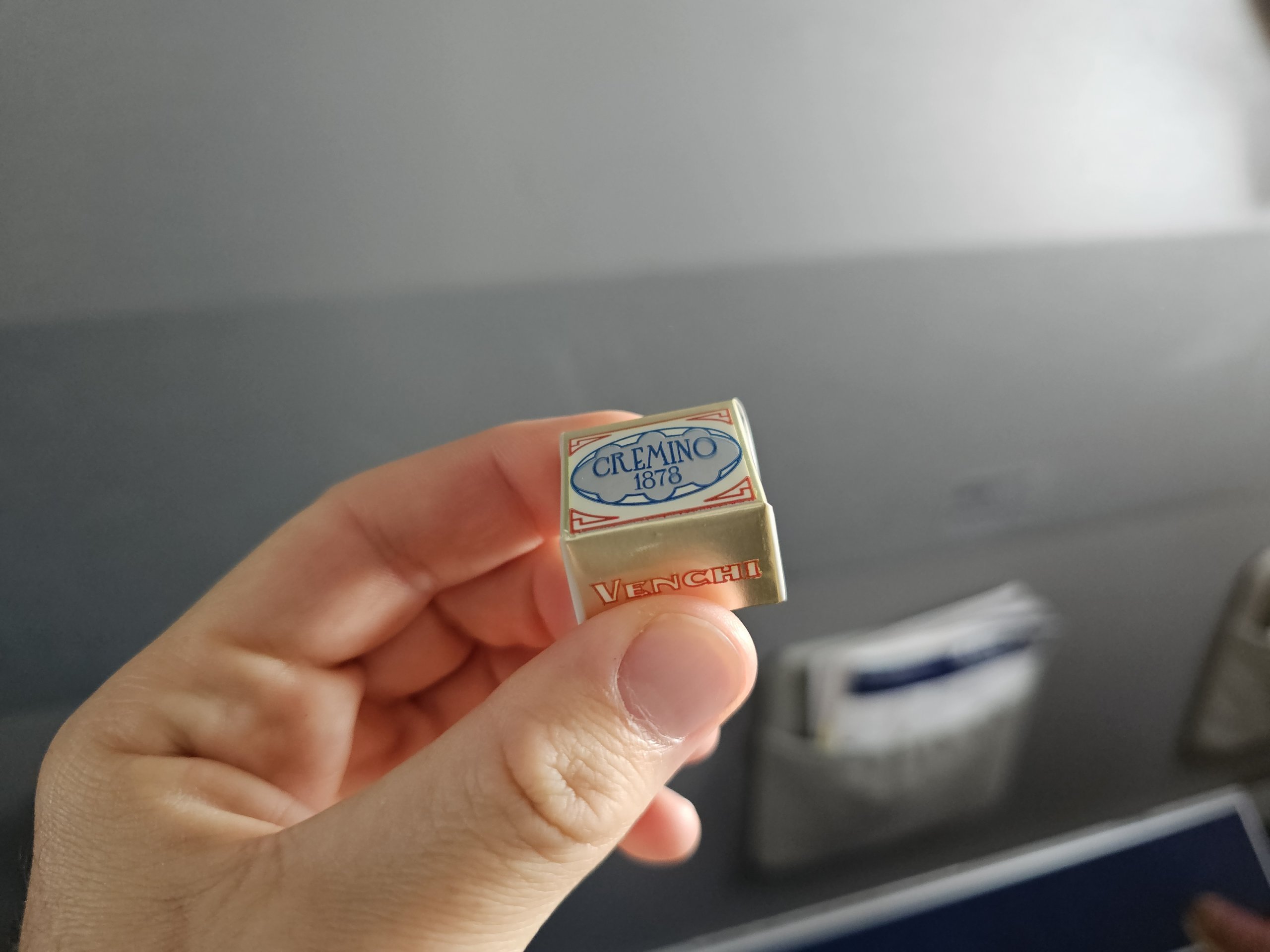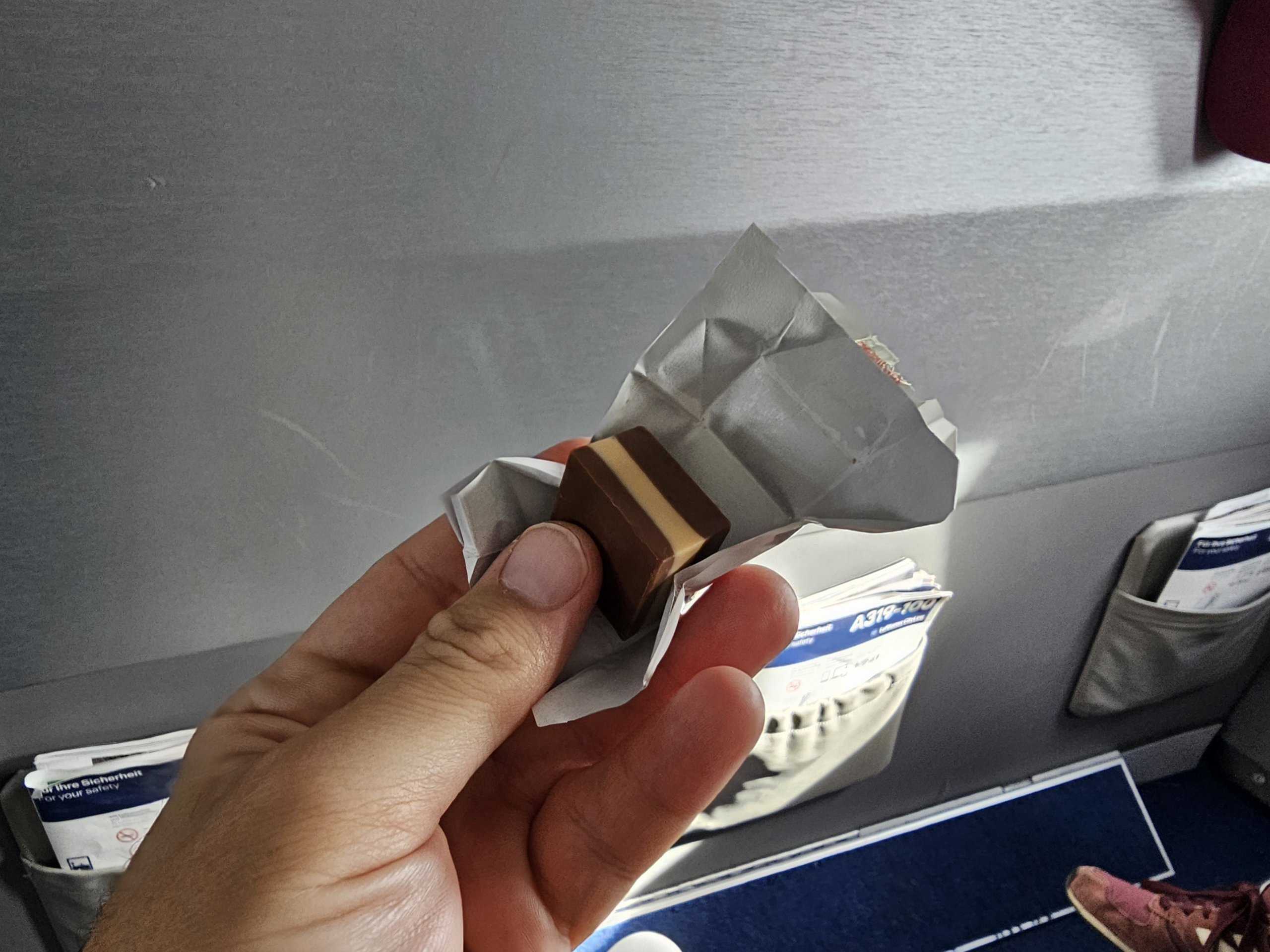 Chiar înainte de aterizare mai primim o mică ciocolată elegantă.