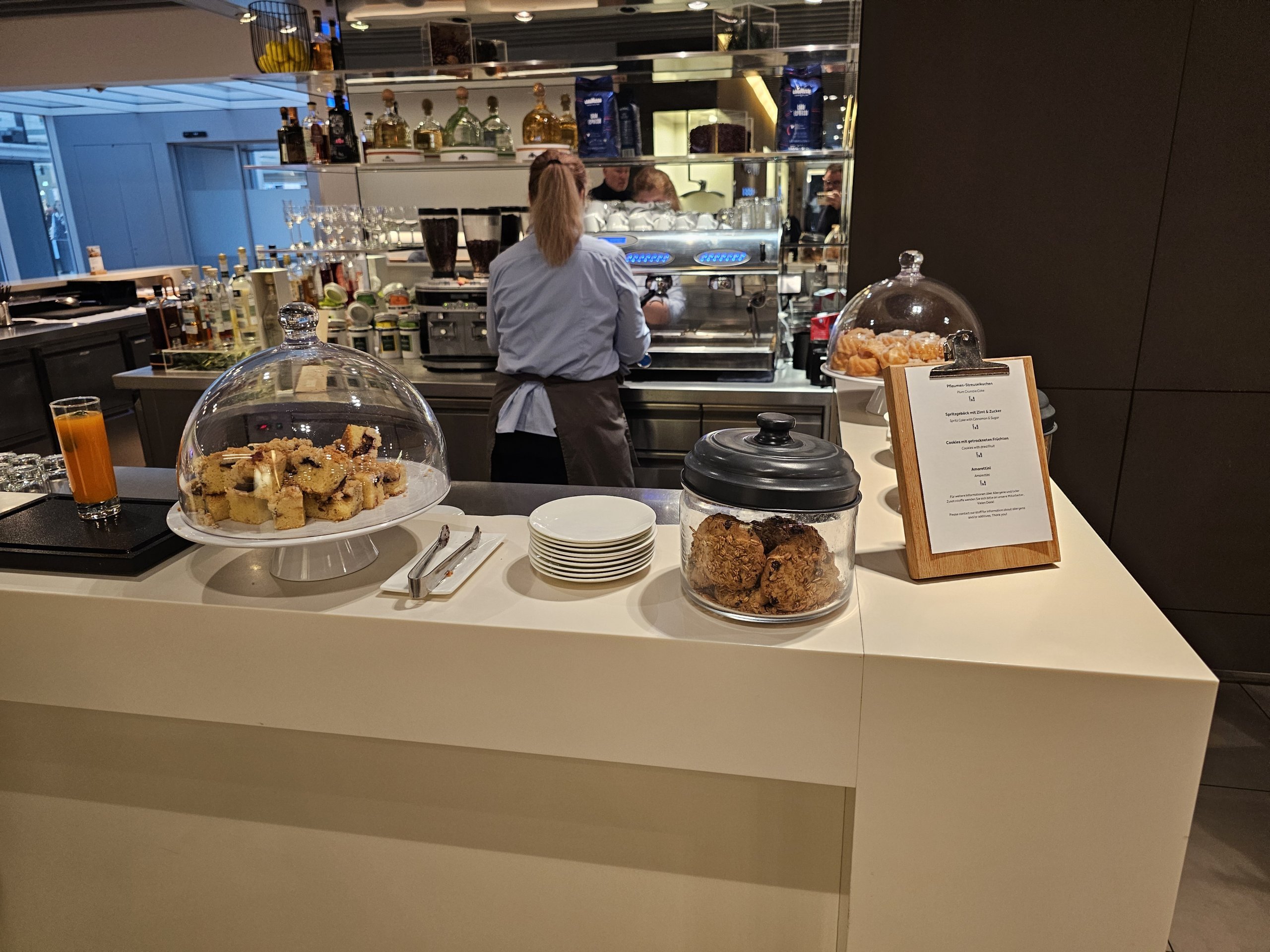 Sincer să fiu, nu observ mari diferențe față de salonul standard Lufthansa Business Class. Principala diferență este prezența unui bar cu o selecție mult mai largă de băuturi alcoolice, dar cum eu beau foarte puțin alcool în călătoriile solo, această schimbare nu este deloc semnificativă pentru mine.