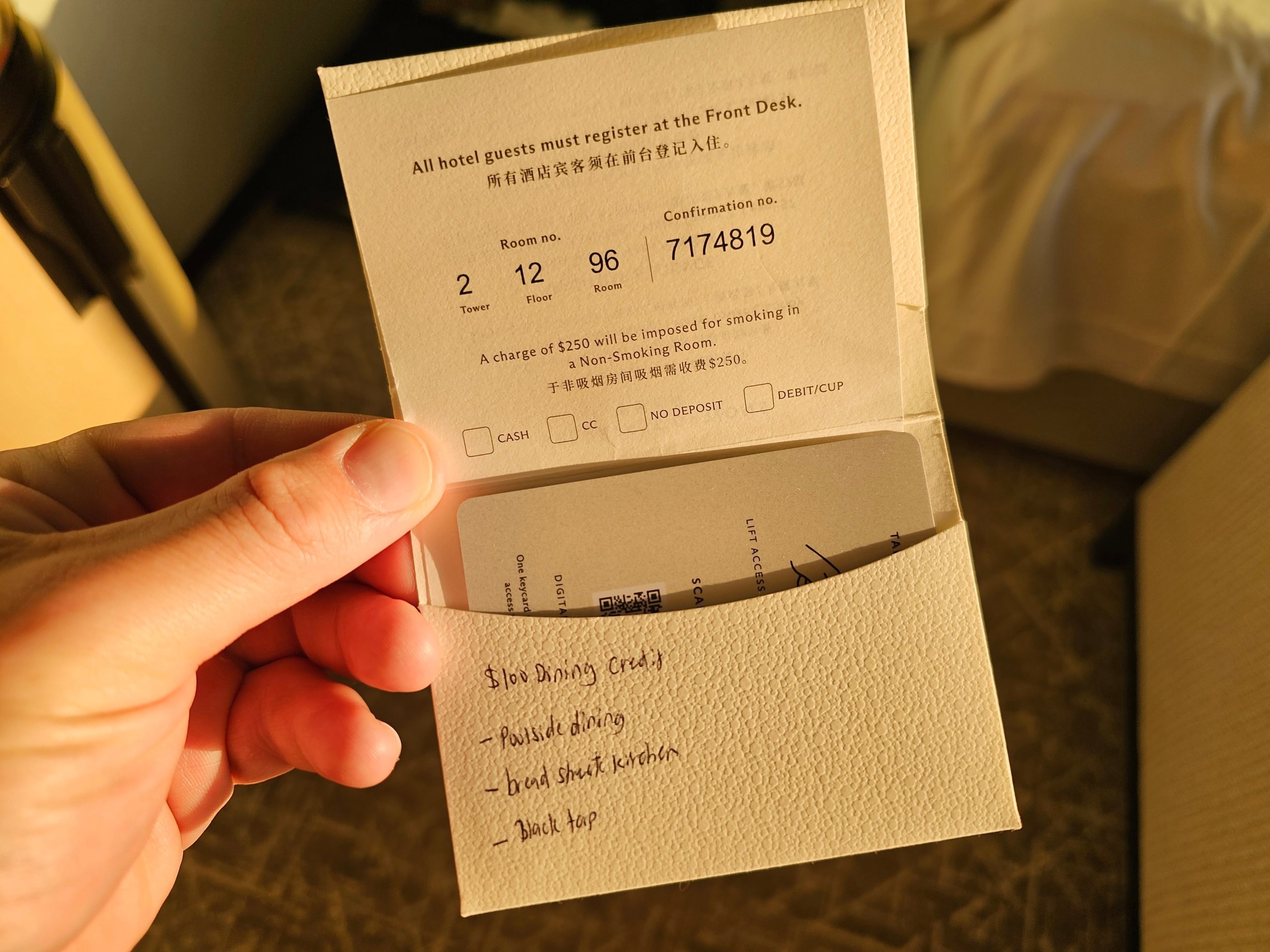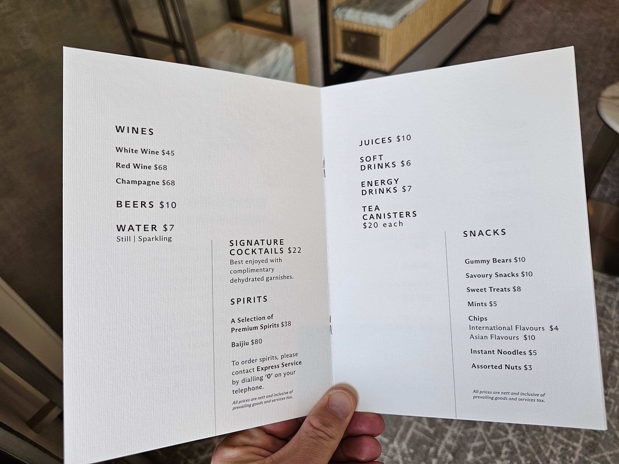 În plus, a inclus un credit de 100 sgd pentru a cheltui la anumite baruri și restaurante din hotel.