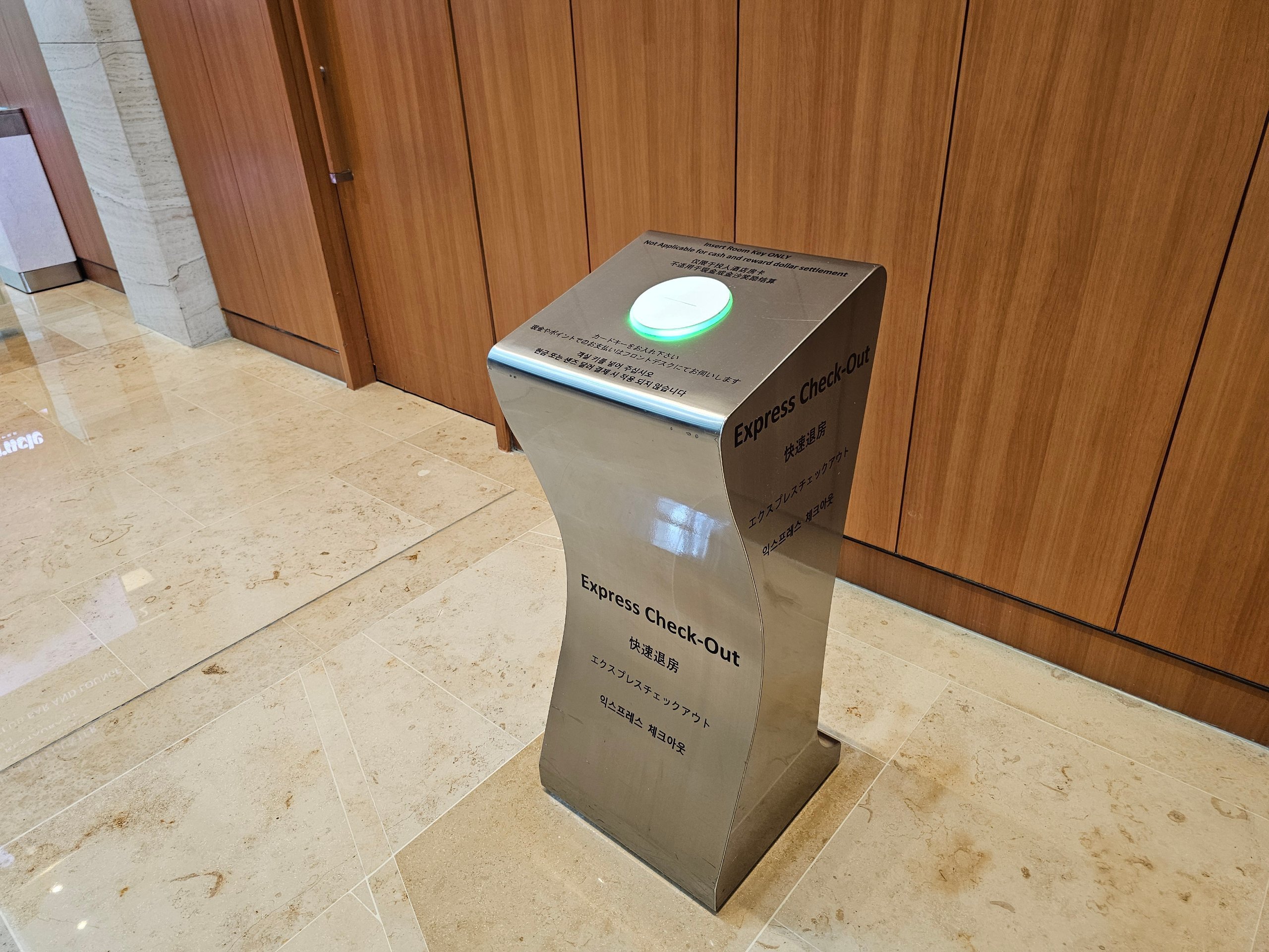 Check-out-ul este foarte rapid și există, de asemenea, un check-out expres fără contact, unde trebuie doar să introduceți cardul de cameră în mașină.