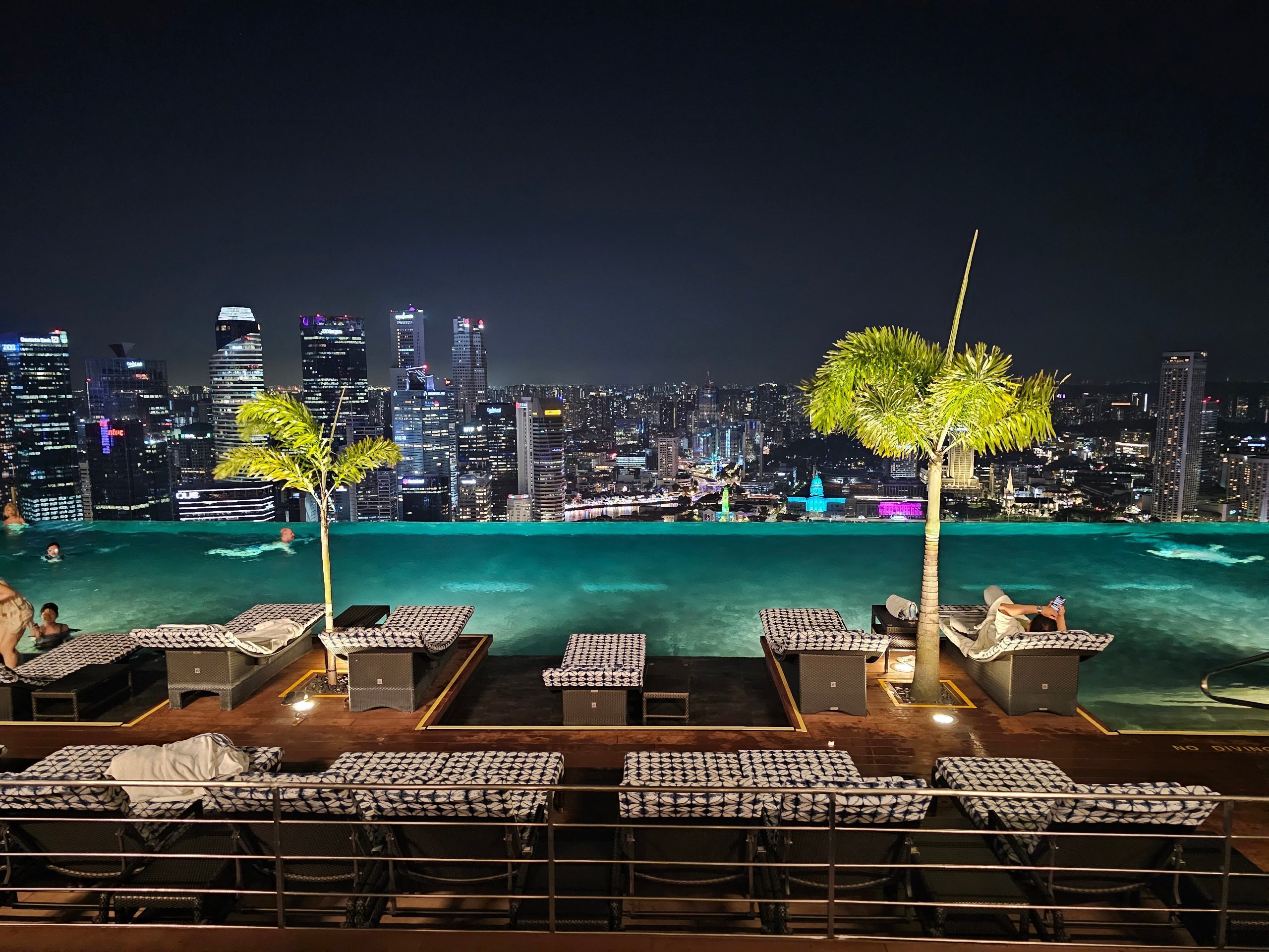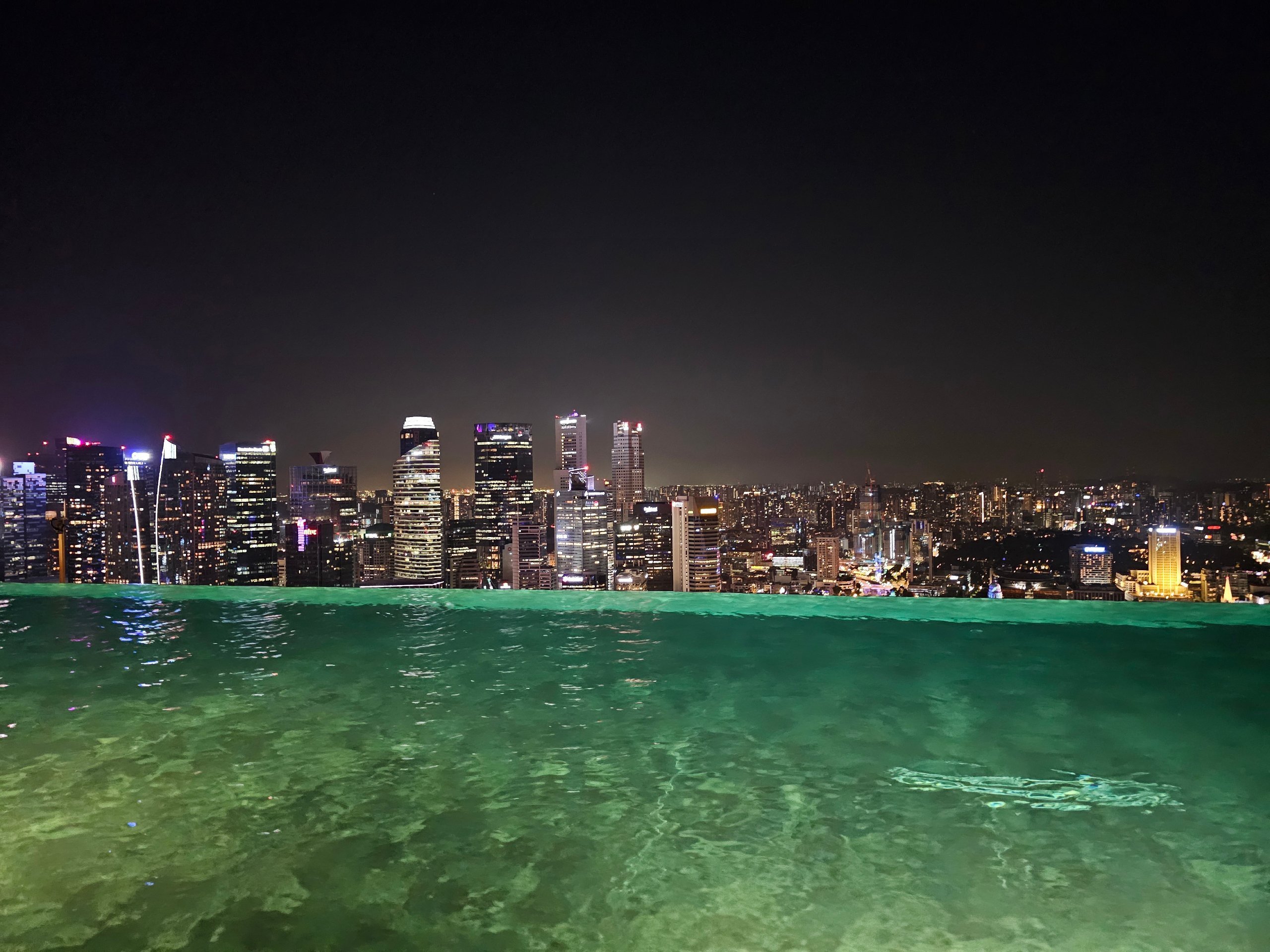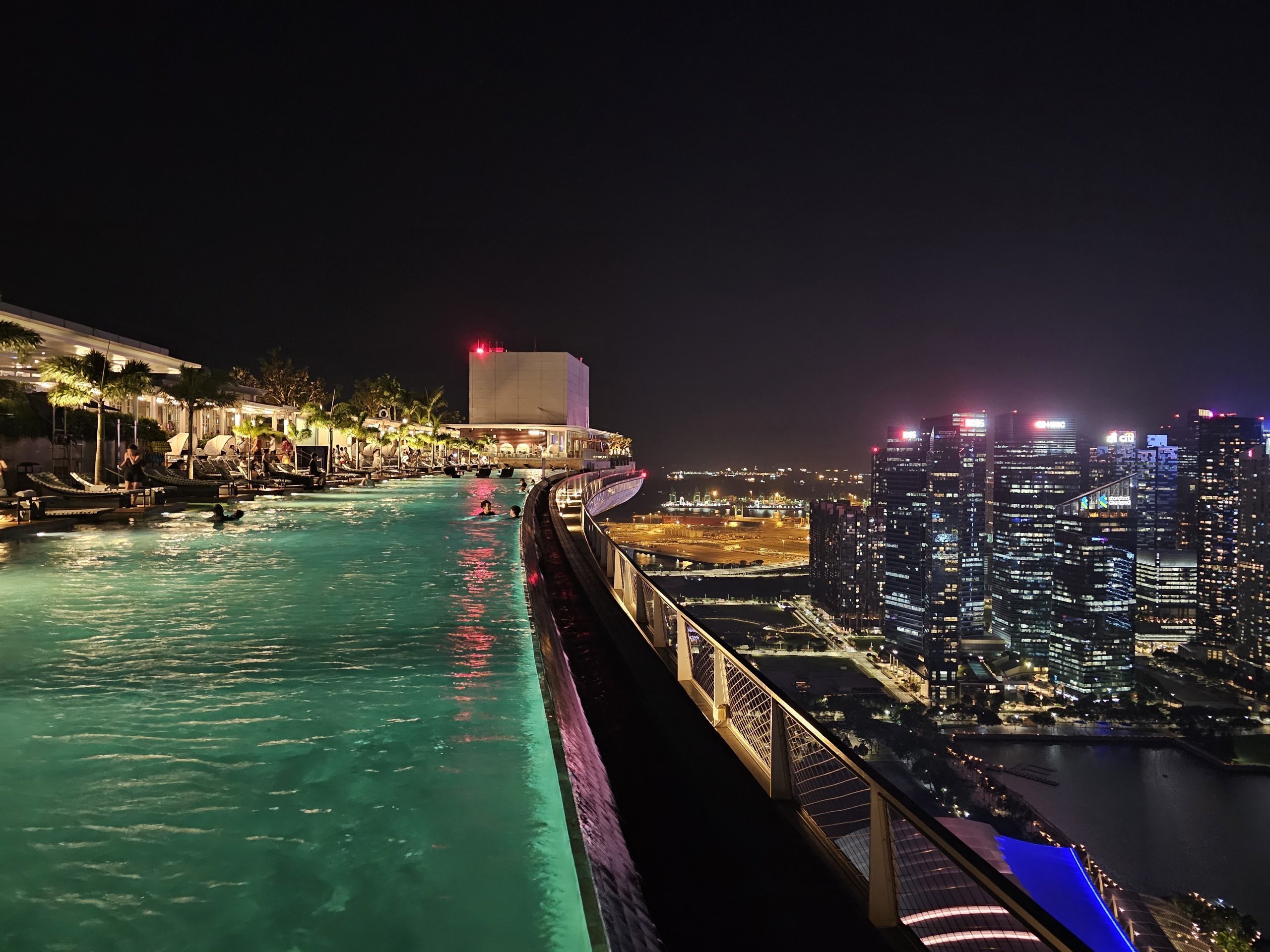 De pe lungimea piscinei, centrul orașului Singapore este în palmă. Și dacă mergeți pe cealaltă parte a acoperișului, puteți vedea Gardens by the Bay și sute de nave de marfă în fundal pe marea liberă.
