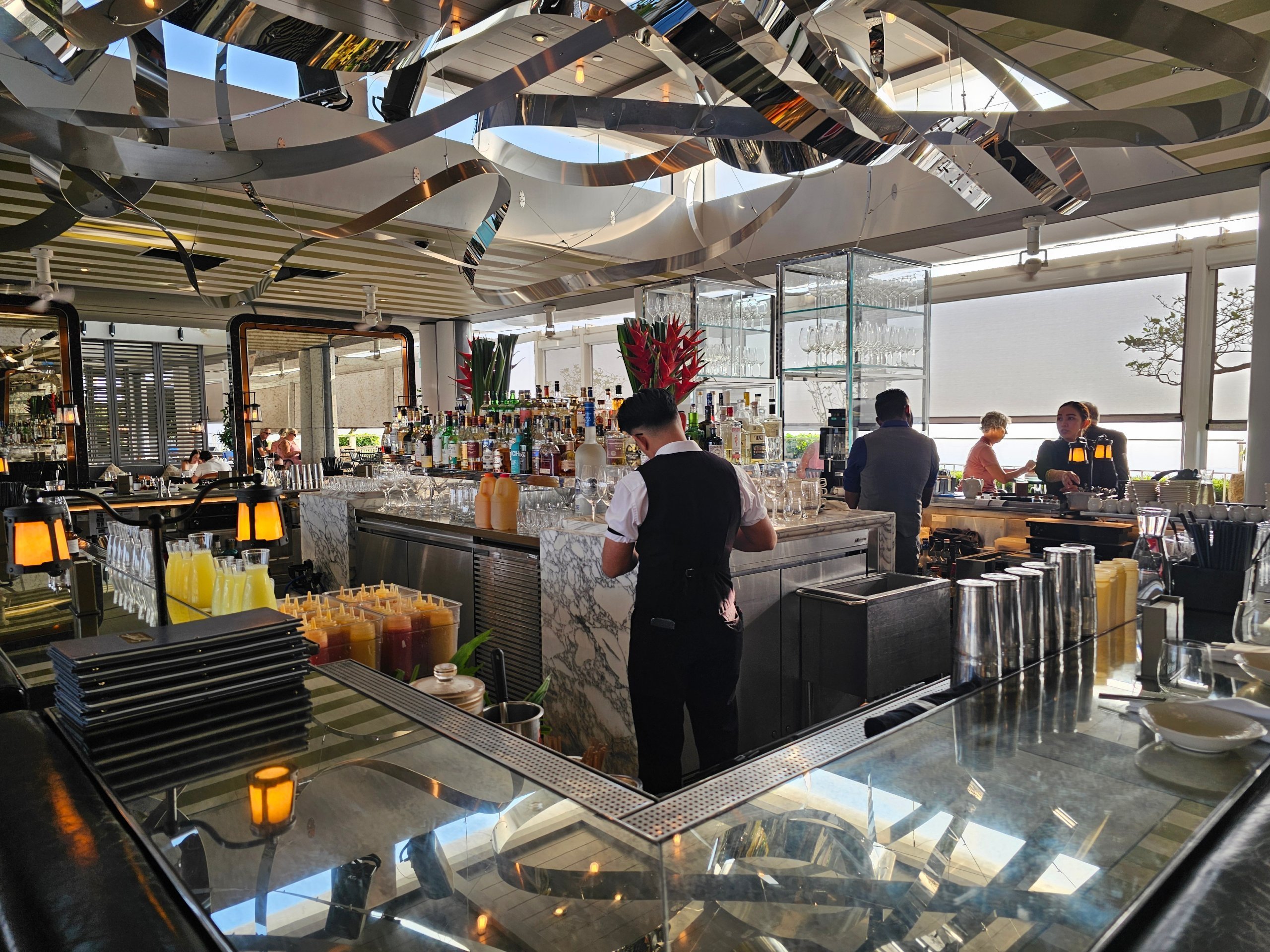 Mic dejun servit în Spago Bar chiar lângă piscina iconică de pe acoperiș.