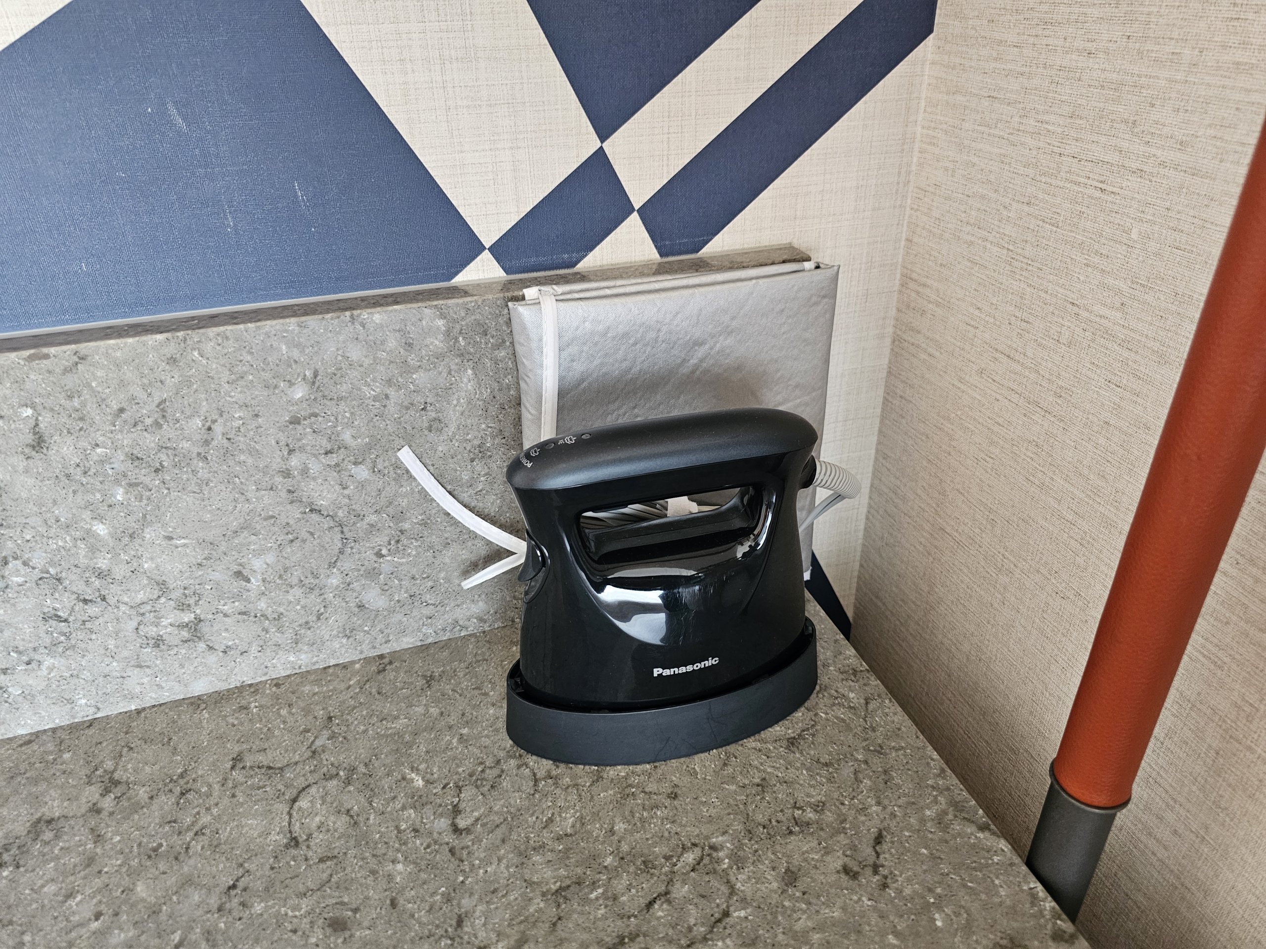 Prizele, inclusiv conectorii USB-A și USB-C sunt atât la marginea patului, cât și pe tejghea, împreună cu cafetiera. Singurul lucru care mă deranjează un pic este controlul climatizării situat doar la intrare și nu chiar lângă pat.
