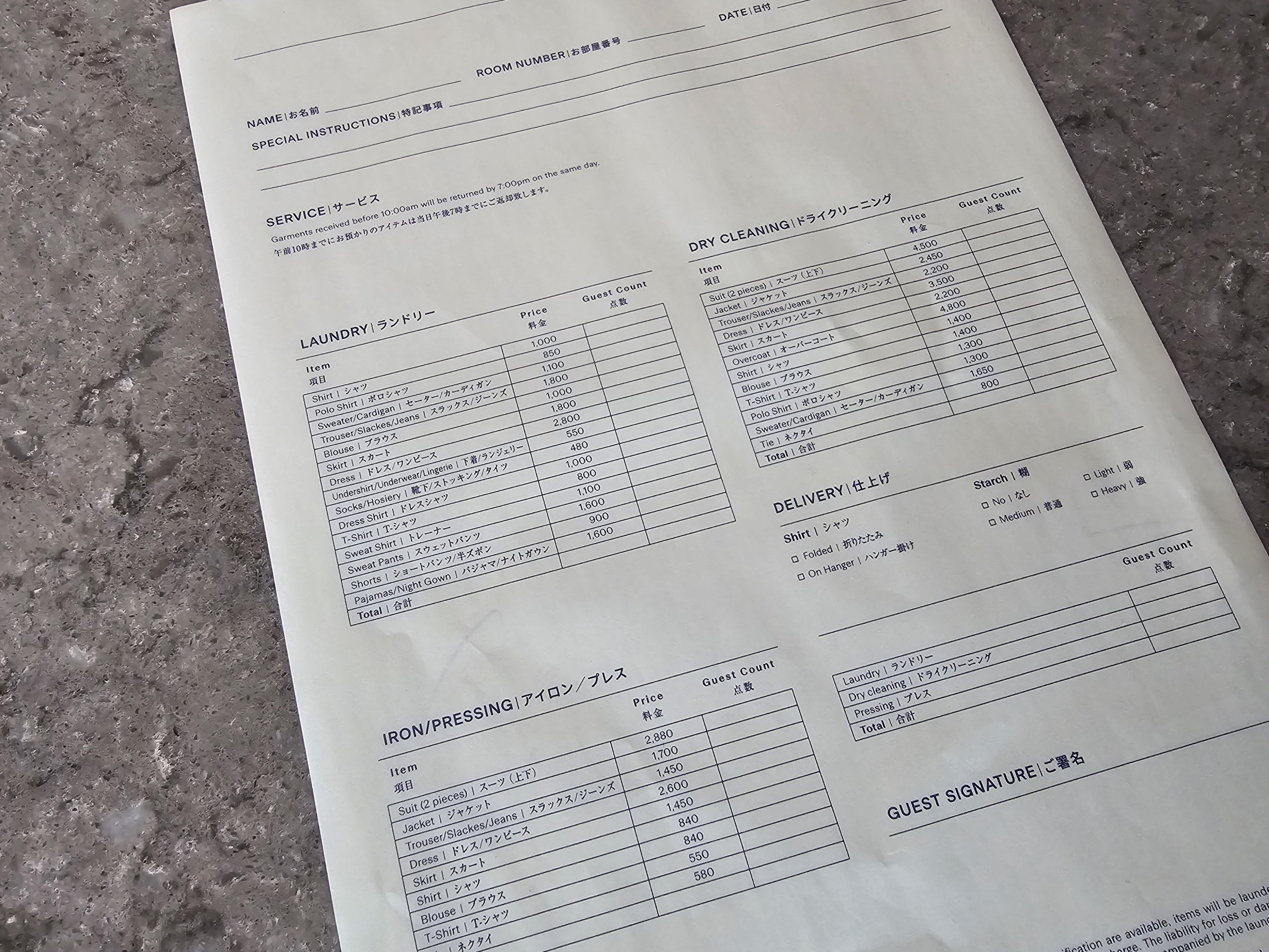 Așa-numitul Laundry Service funcționează simplu. Îți pui hainele murdare într-o pungă specială în cameră, serviciul de curățenie le ridică și, de obicei, le returnează în camera ta spălate până a doua zi.