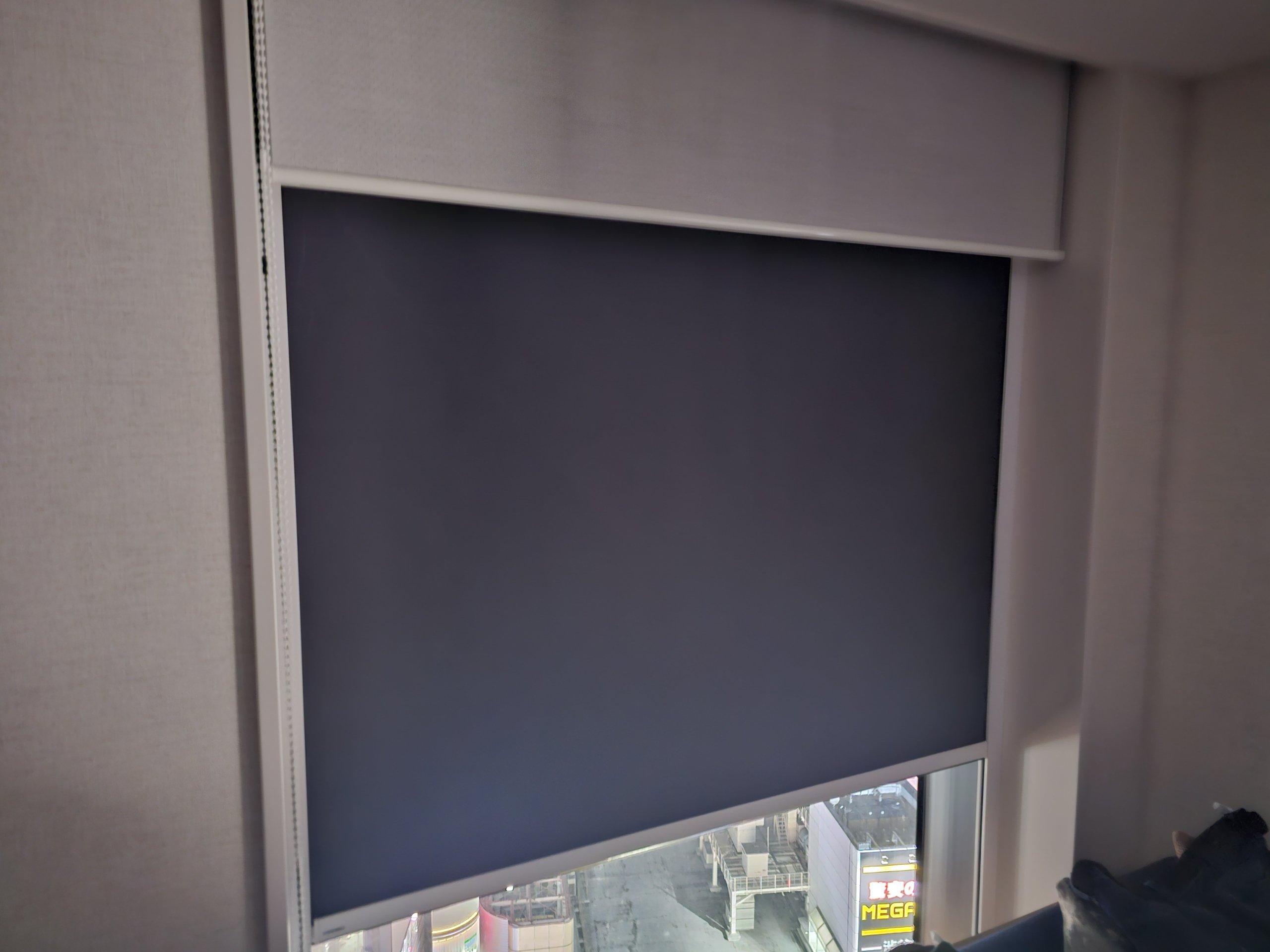 Deoarece linia orizontului din Tokyo strălucește toată noaptea, sunt puțin îngrijorat de cât de întunecată va fi camera. Toate ferestrele au atât o umbrelă de soare, cât și o jaluzele 100% black-out, astfel încât camera este complet întunecată în timpul nopții.