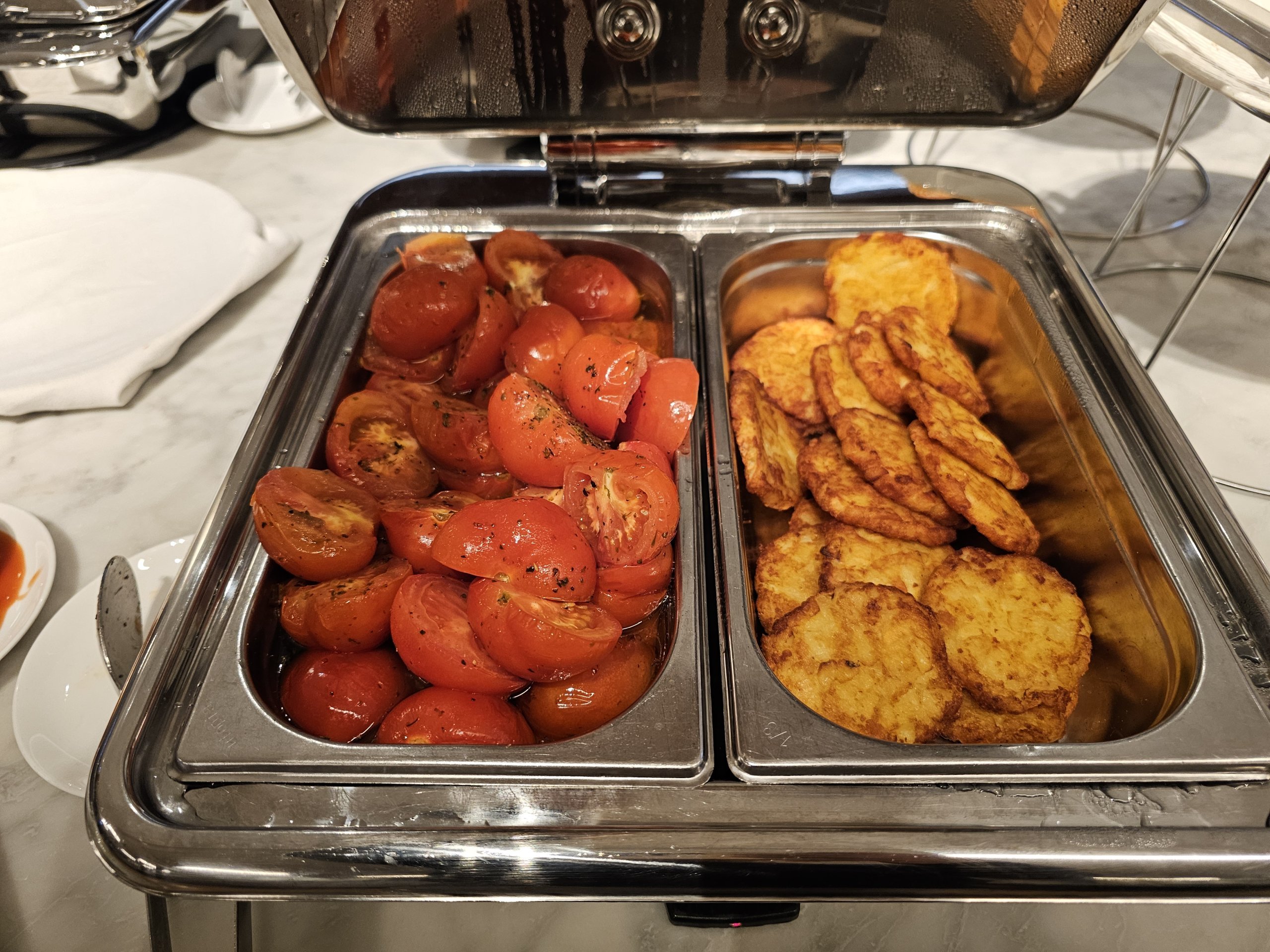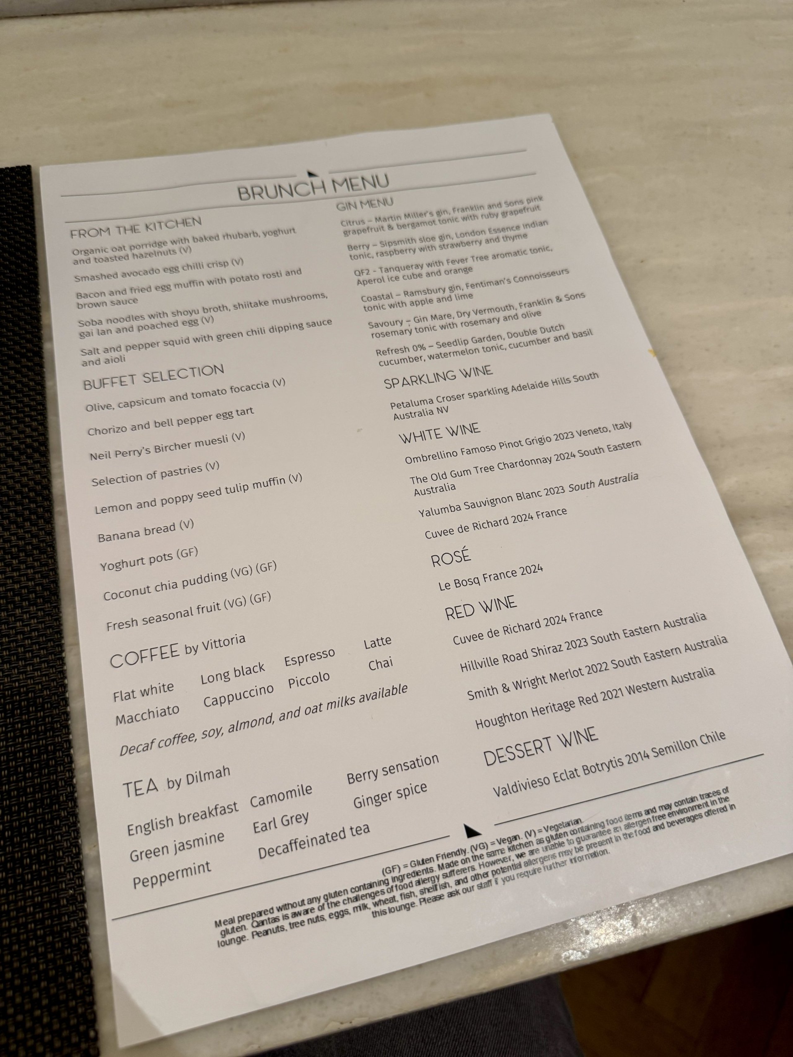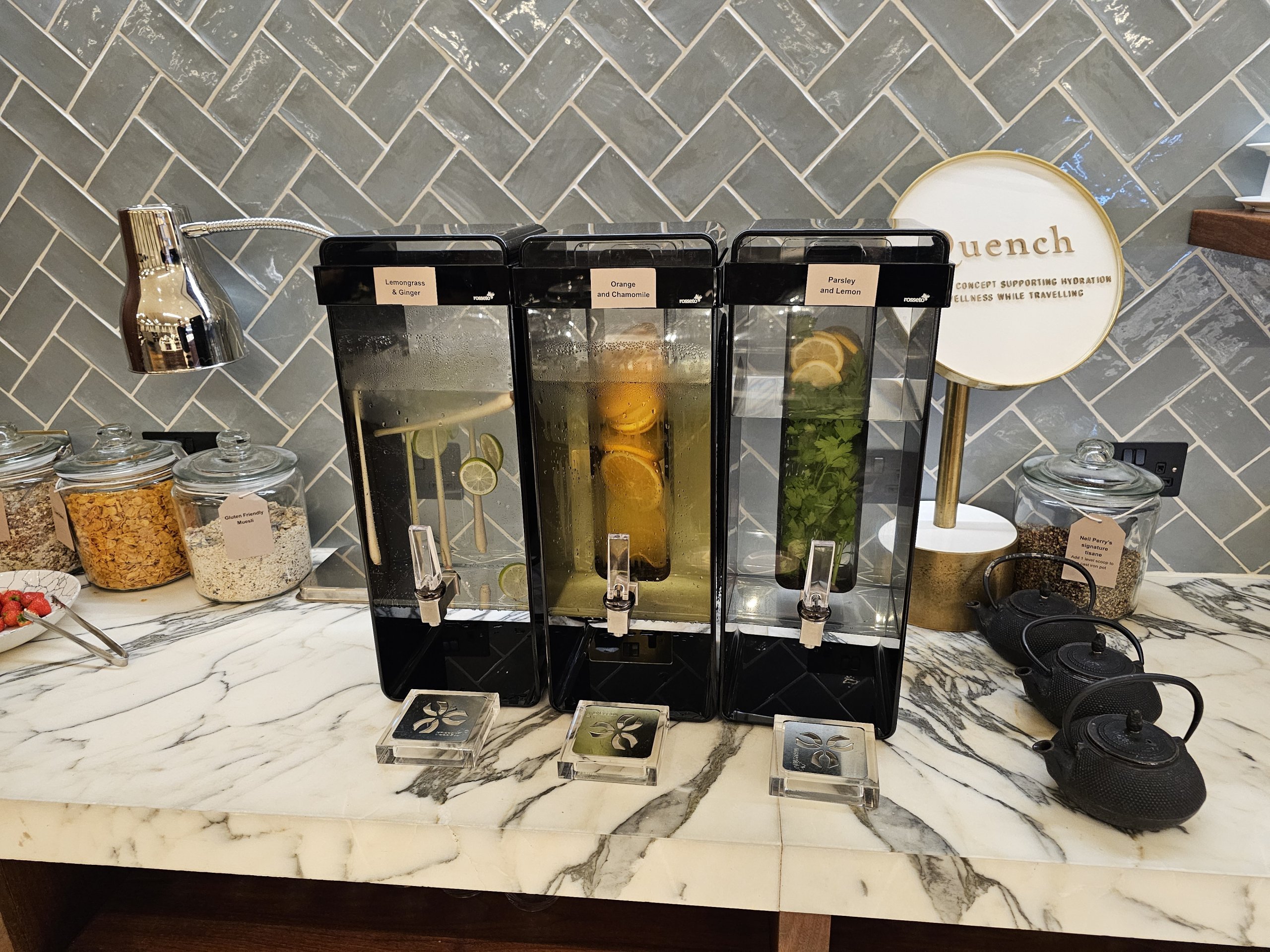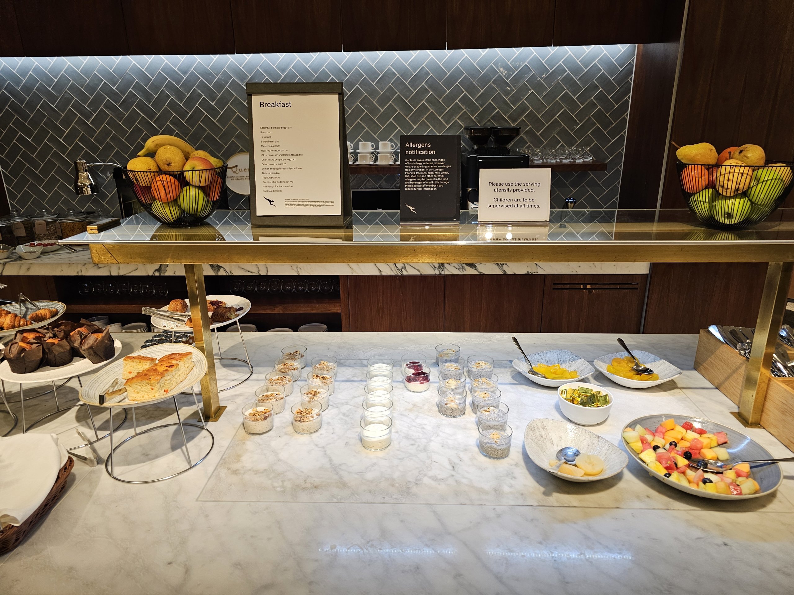 Cu toate acestea, există o lipsă totală de tejghele cu alte dulciuri sau poate brânză sau șuncă. În general, oferta de mâncare nu este la fel de extinsă ca, de exemplu, Cathay Pacific Lounge de alături.