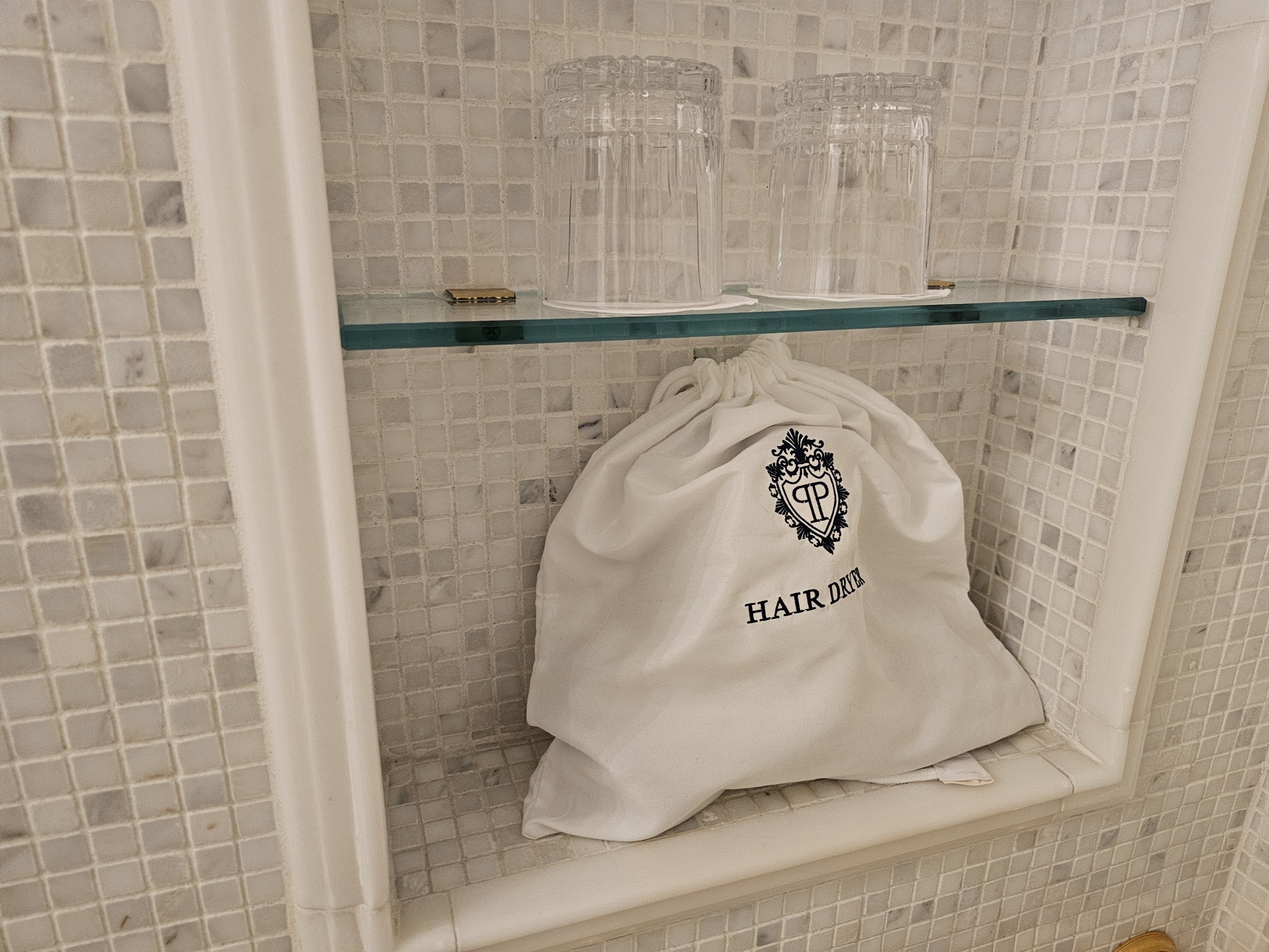 Baia este dotată cu un uscător de păr și un mic kit de toaletă.