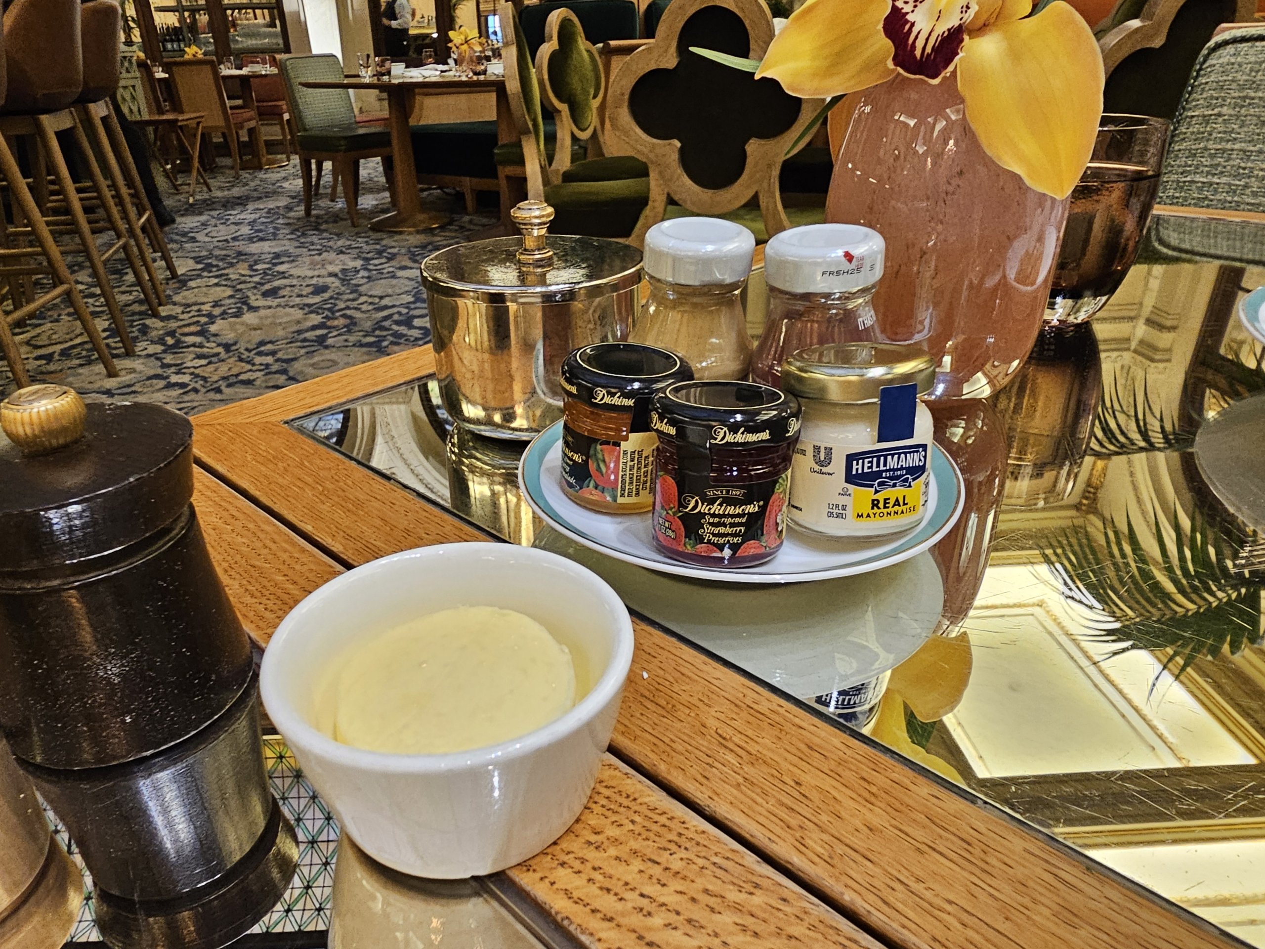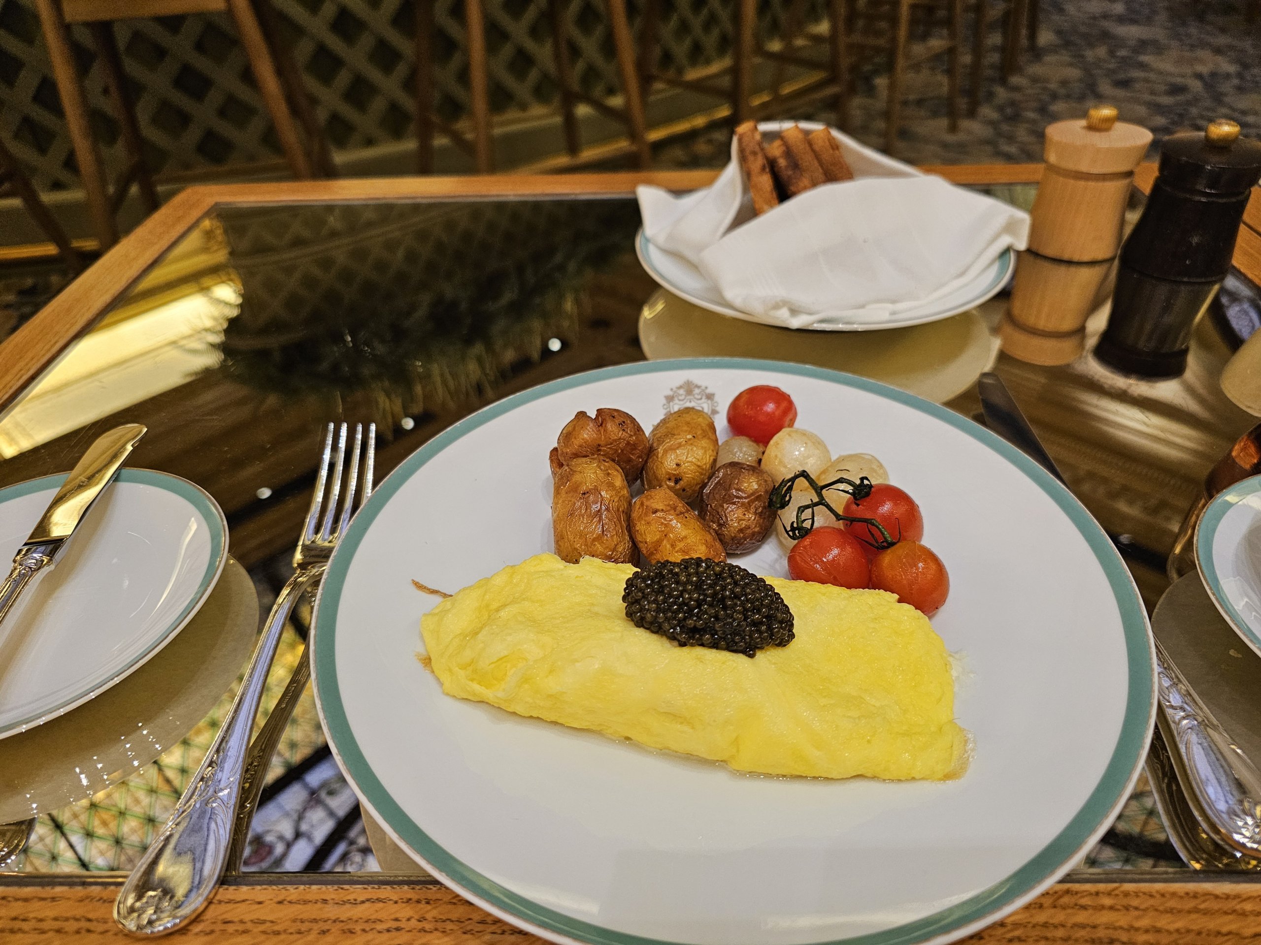Micul dejun este servit atât în Palm Court, cât și în Champagne Bar - puteți comanda mâncare identică în ambele locuri.