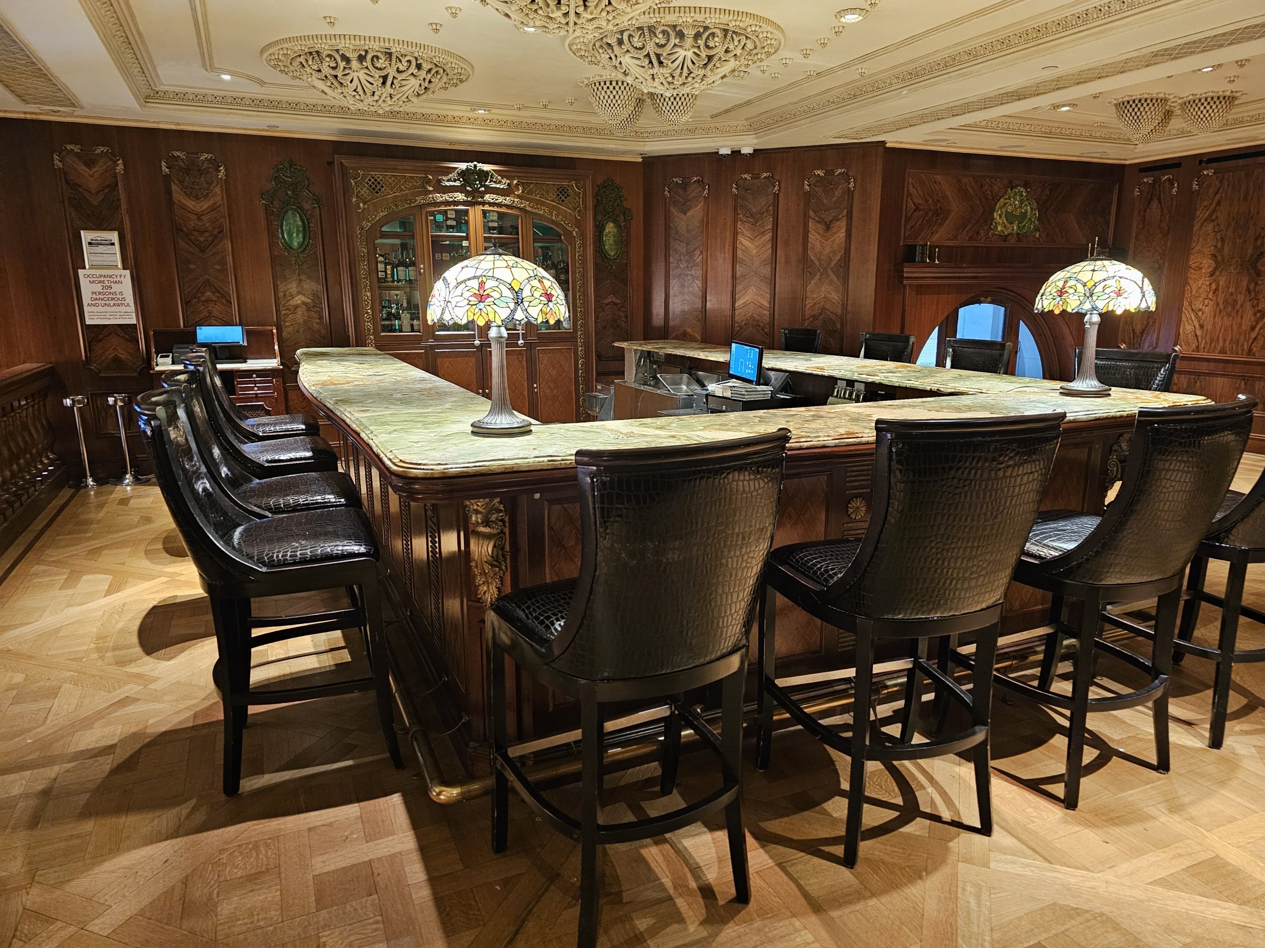 În prima seară folosim voucherele pentru băuturi gratuite pe care le primim la check-in și mergem la Champagne Bar în stil mare pentru un pahar de șampanie.